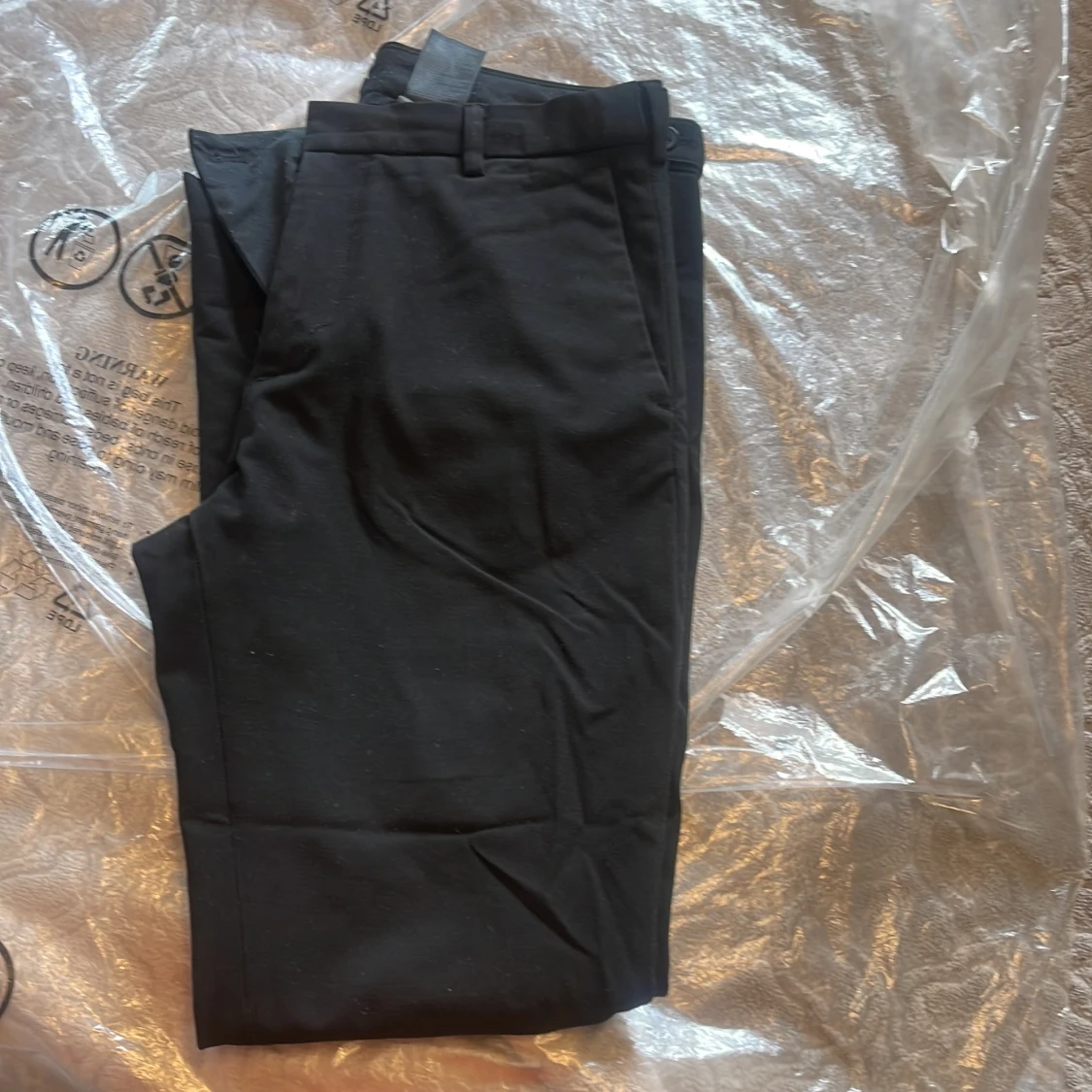 Svarta kostymbyxor i slim fit med klassisk design och raka ben. Byxorna har hällor för bälte, fickor fram och bak samt stängs med dragkedja och knapp. Materialet är en mix av polyester, viskos och elastan för en skön stretchig känsla.