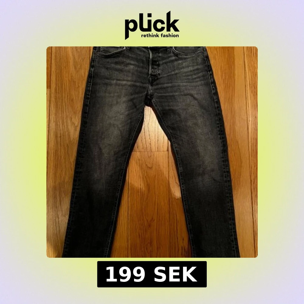 Snygga svarta jeans med lätt tvättad look och klassiska fem fickor. Jeansen har smal passform och raka ben, perfekt för en stilren och modern outfit. Materialet är jeans och färgen är mörkgrå till svart.