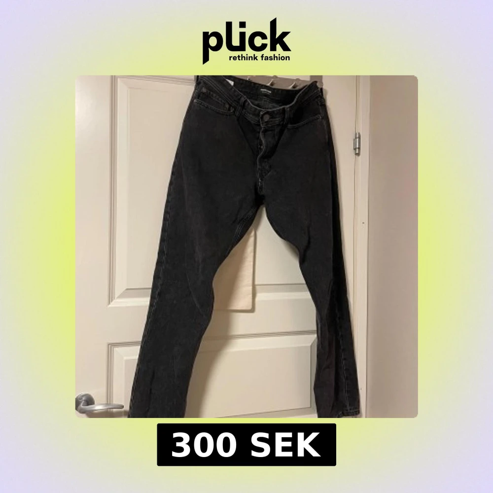 Säljer ett par svarta jeansbyxor i storlek 31/32. Köpta på Jack and Jones men aldrig använda
