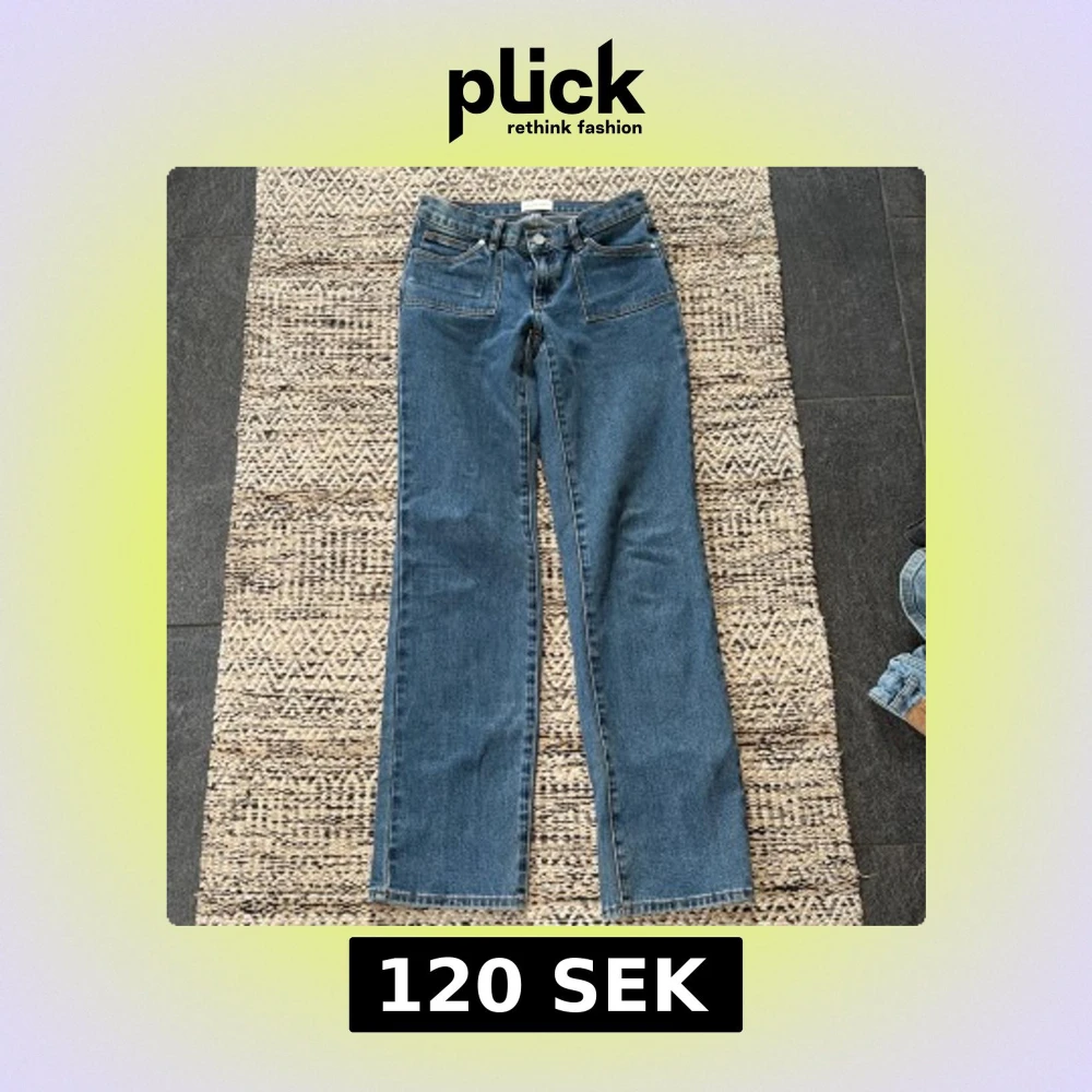 Blå jeans från Abrand Jeans med raka ben och femficksdesign. Jeansen har låg-medem midja och normal i passform. Vet inte exakt storlek så här är måtten❣️midja: 35 höft: 40/41 innerben: 78