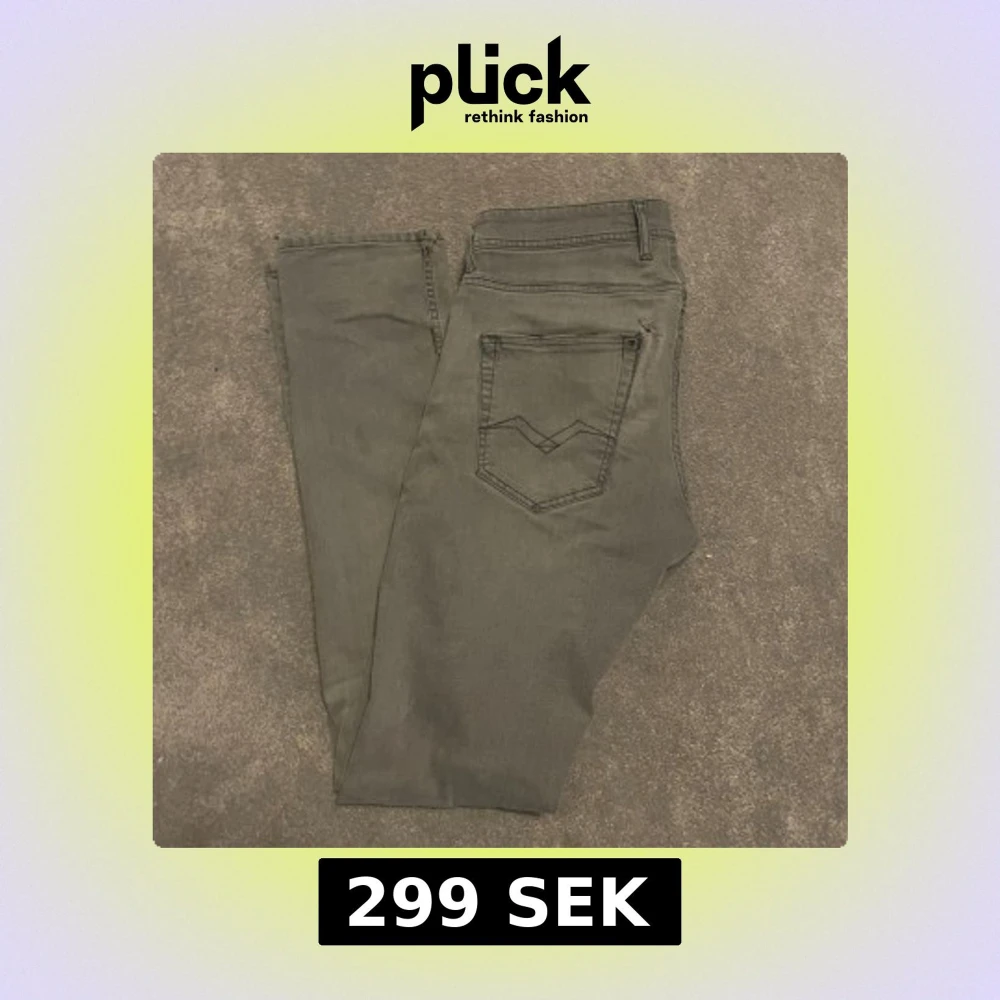 Grå skinny jeans från Replay, storlek 28 32 - Snygga grå jeans från Replay i skinny fit, storlek 28. Klassisk femficksmodell med svarta detaljer och knappstängning. Jeansen har låg midja och är tillverkade i mjukt bomullsmaterial med stretch för extra komfort. Perfekt för dig som gillar en smal siluett.