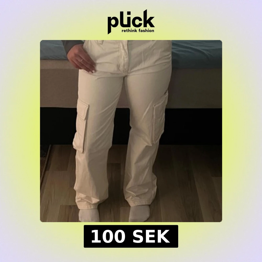 Säljer ett par beiga cargobyxor från GinaTricot med raka ben och stora fickor på sidorna. Byxorna har normal passform och är tillverkade i bomull. Perfekta för en avslappnad och trendig stil.