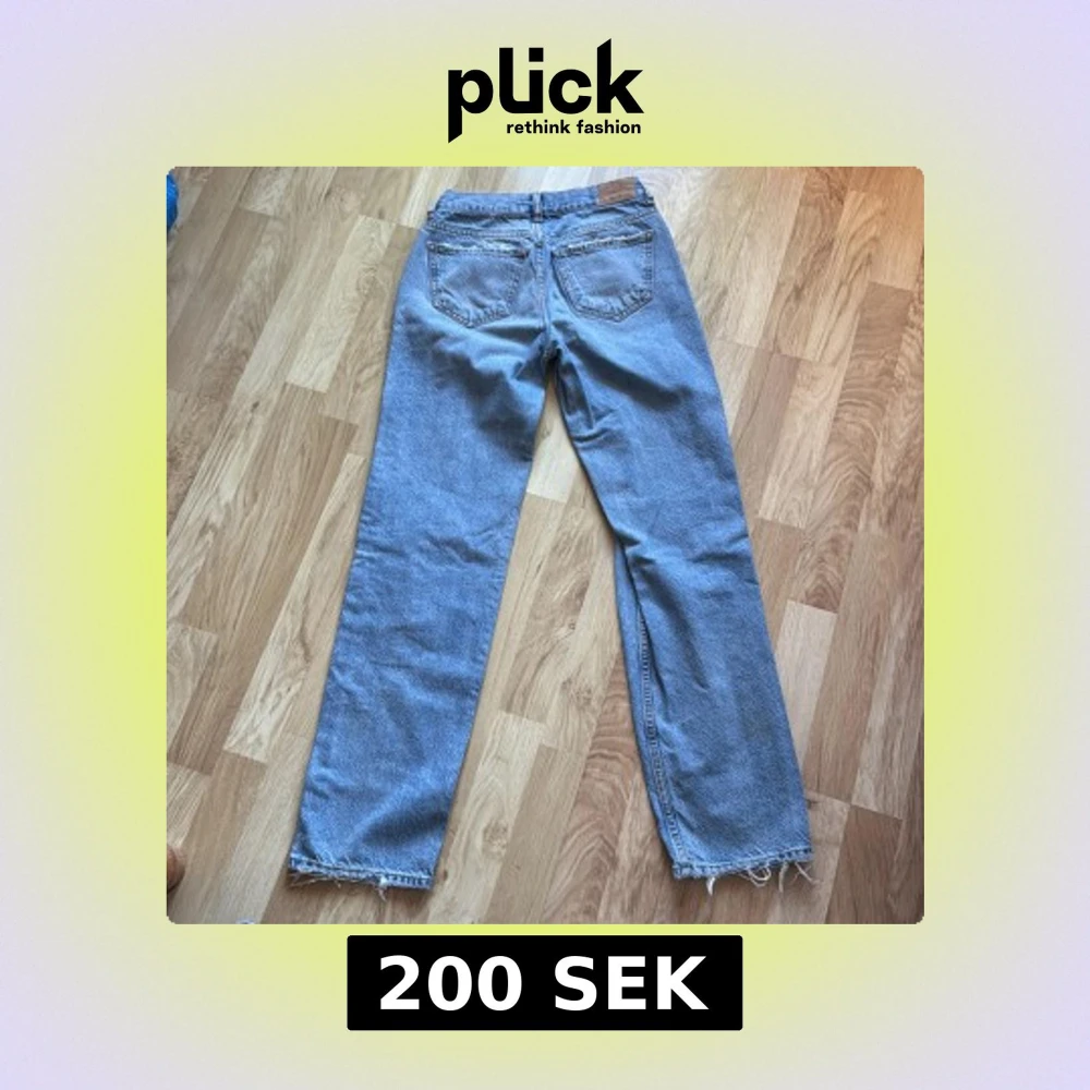 Säljer ett par klassiska blå jeans från Ginatricot, midwaist. De har en rak passform och är tillverkade i slitstarkt denim. Jeansen har en knappgylf och femficksdesign. Perfekta för en avslappnad stil.