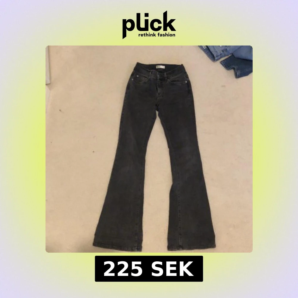 Snygga grå bootcut jeans från Gina Tricot. De har en klassisk femficksdesign och är normalmidjade för en bekväm passform. Perfekta för en stilren look.
