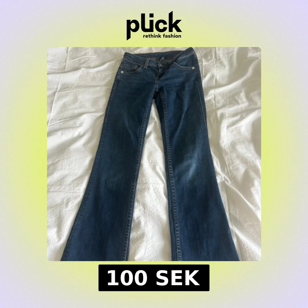 Säljer dessa mörkblå lågmidjade bootcut jeansen från H&M som jag köpte här på plick. Storlek 32 och passar mig som är 154 perfekt i längden.