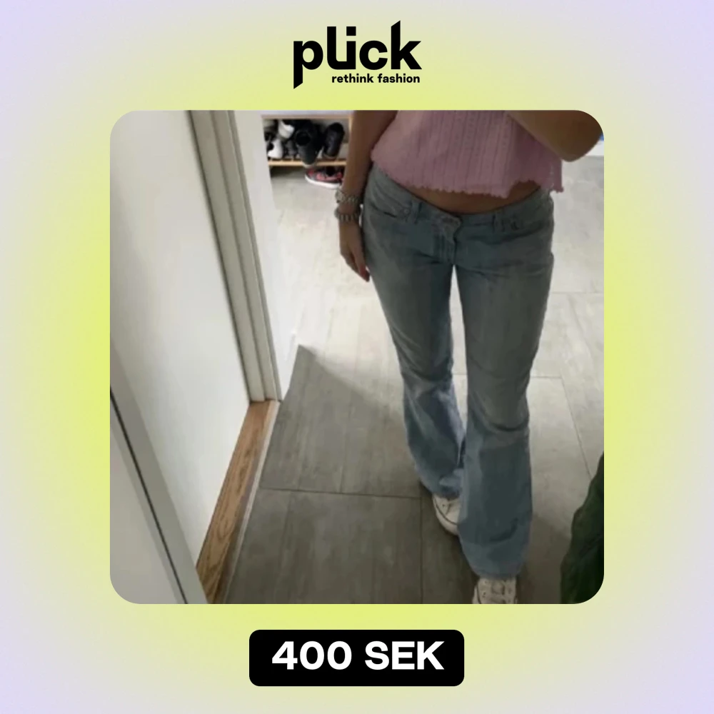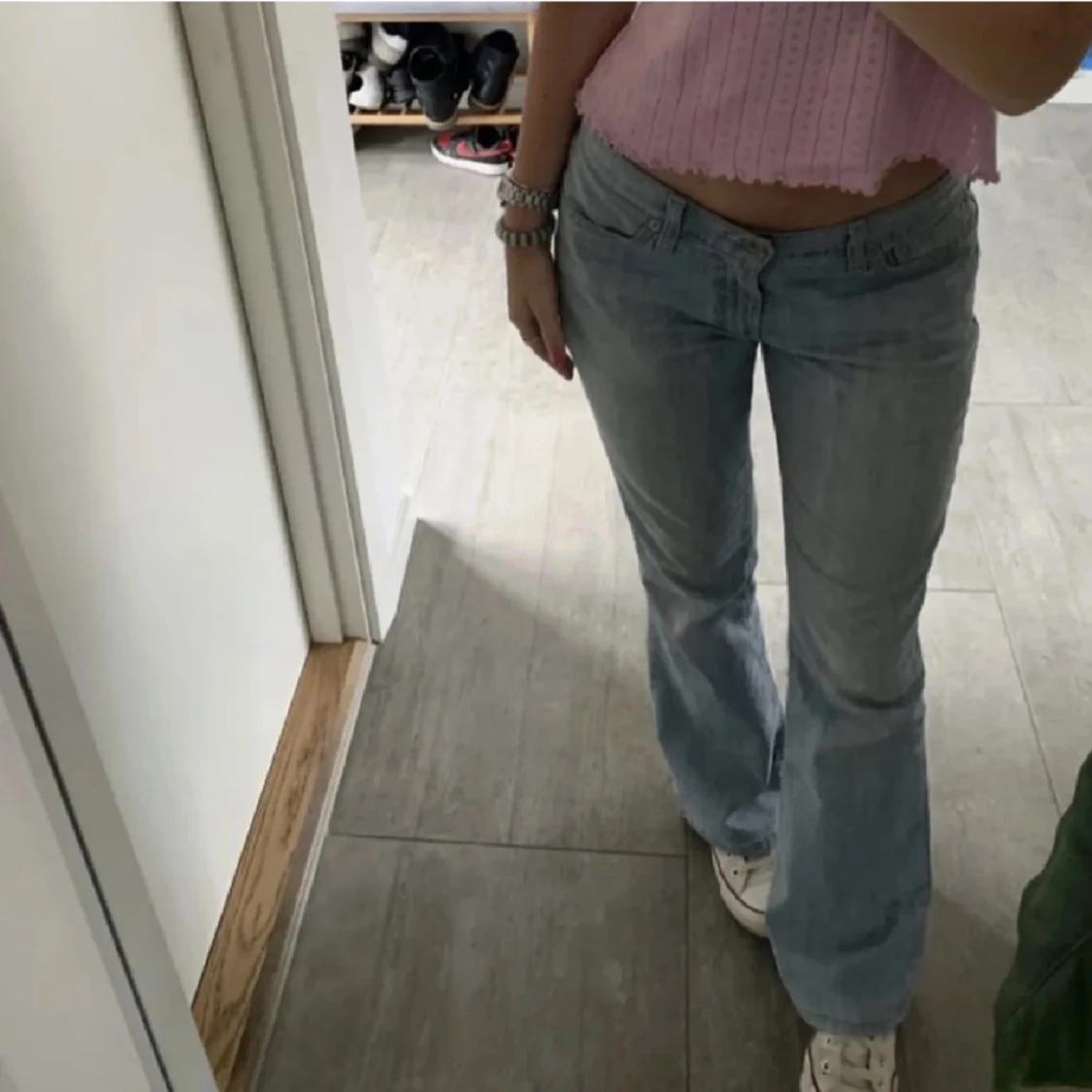 Fina lågmidjade bootcut jeans! ❤️På andra bilden kan man se att dem har som ett randigt mönster 💗 Säljer för 500kr 💓 Inga defekter och allt är ”som det ska”.