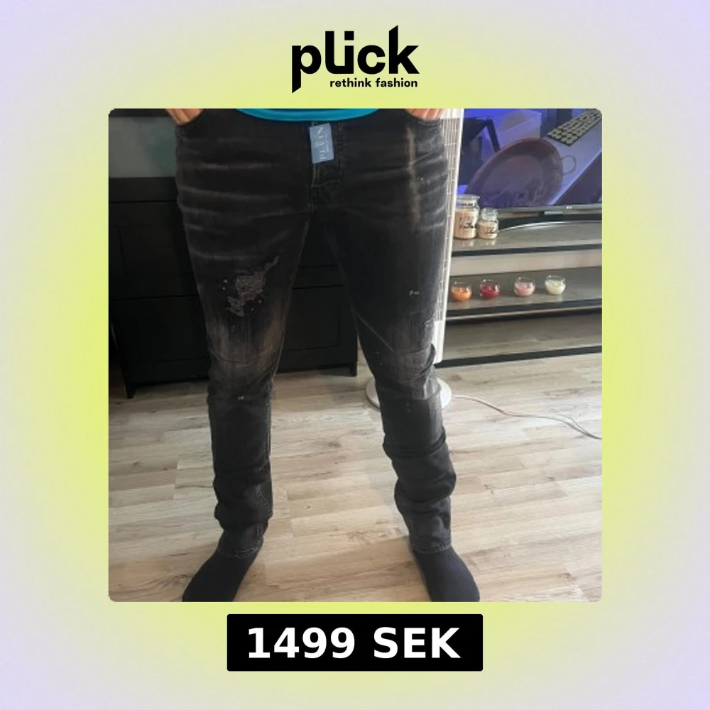 Snygga svarta jeans från Philipp Plein med slitna detaljer och coolt tvättad look. Byxorna har raka ben, silverfärgad PP-logga på bakfickan och klassisk femficksdesign. Tillverkade i stretchig denim för skön passform. Passar för dem som är 175-185cm storlek 33 men Philip plain storlek