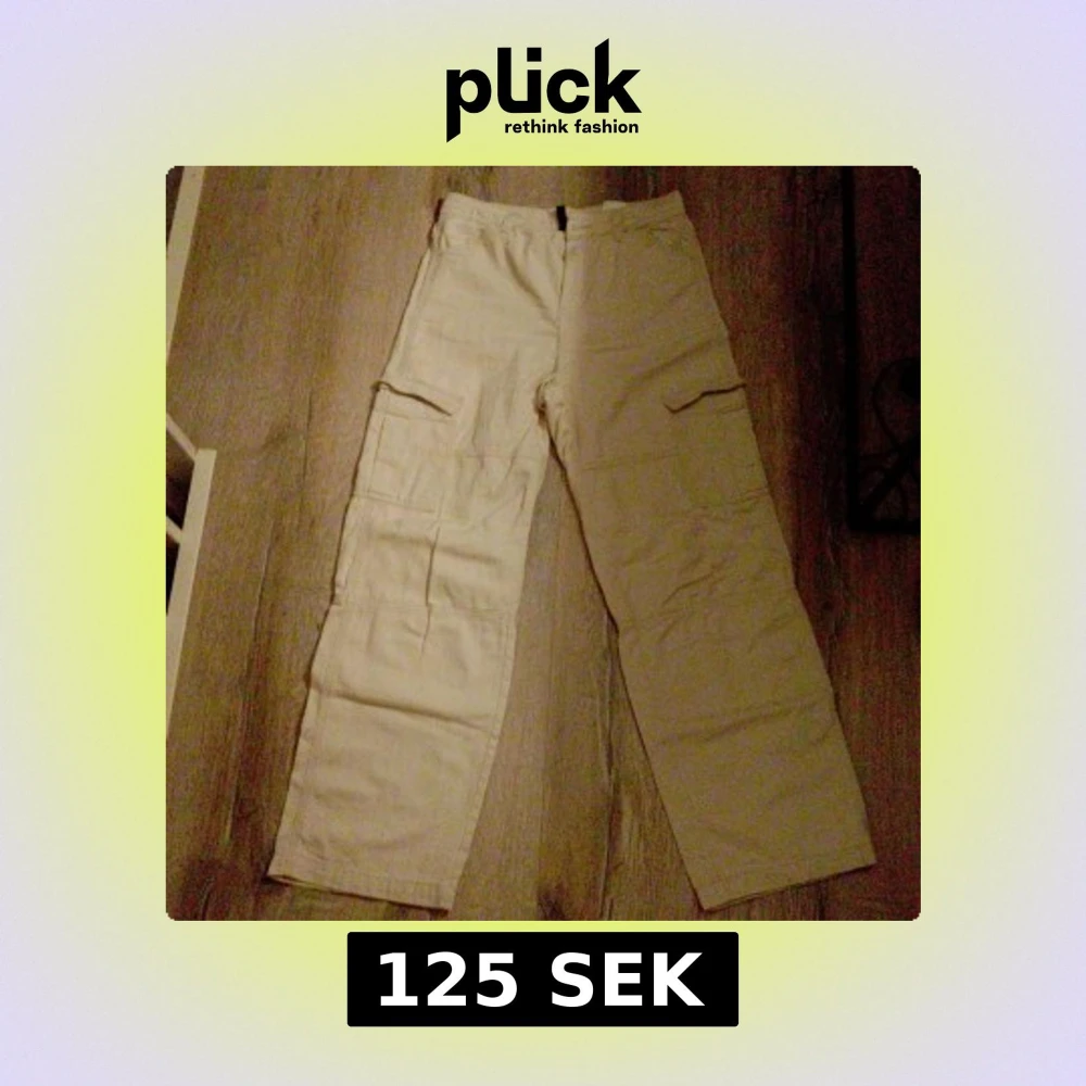 Säljer ett par beiga cargobyxor från H&M Divided i storlek 34. Byxorna har flera praktiska fickor på sidorna och raka ben. Tillverkade i bomull för en skön och avslappnad känsla. Perfekta för en chill och trendig look.