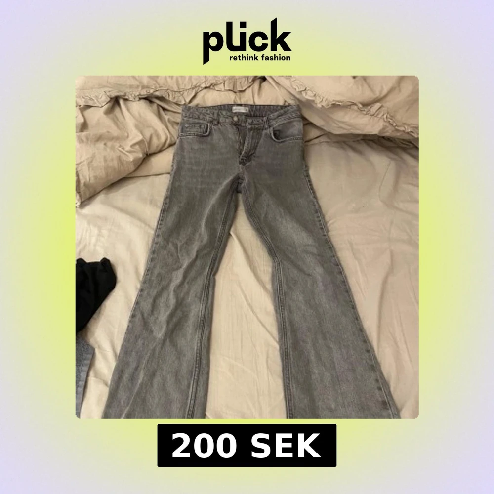 Säljer ett par grå jeans från Perfect Jeans. De har en klassisk femficksdesign och en liten slitage på bakfickan. Perfekta för en avslappnad stil.