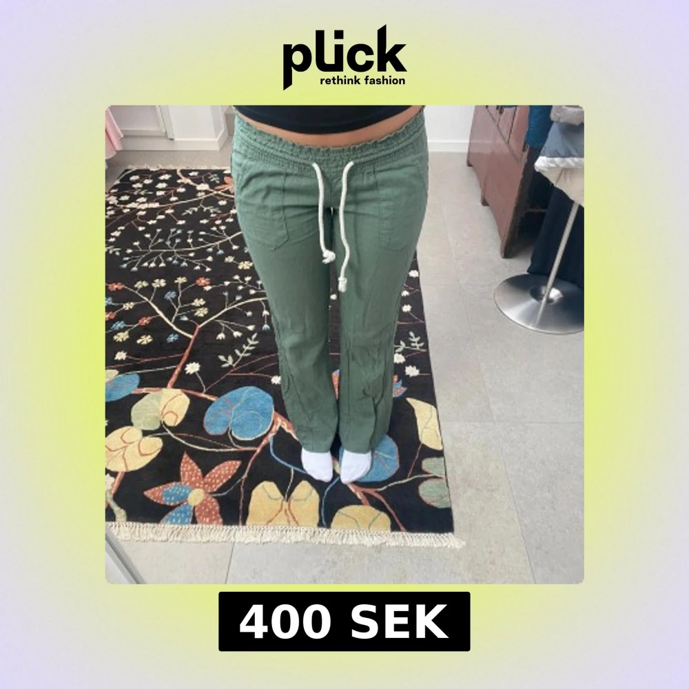 Roxy linnebyxor  - Snygga gröna linnebyxor. Byxorna har låg midja.  Jag köpte de här på plick. De är väldigt fint skick och har inga defekter! Passar perfekt i längden på mig som är 170