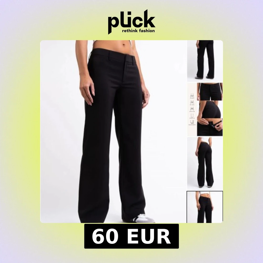 Snygga svarta byxor med låg midja och raka ben. De har bälteshällor och ficklock baktill. Perfekta för en stilren look. Storlek: 34/tall. Använt max 4 gånger. Original price: 74,90 Eur.