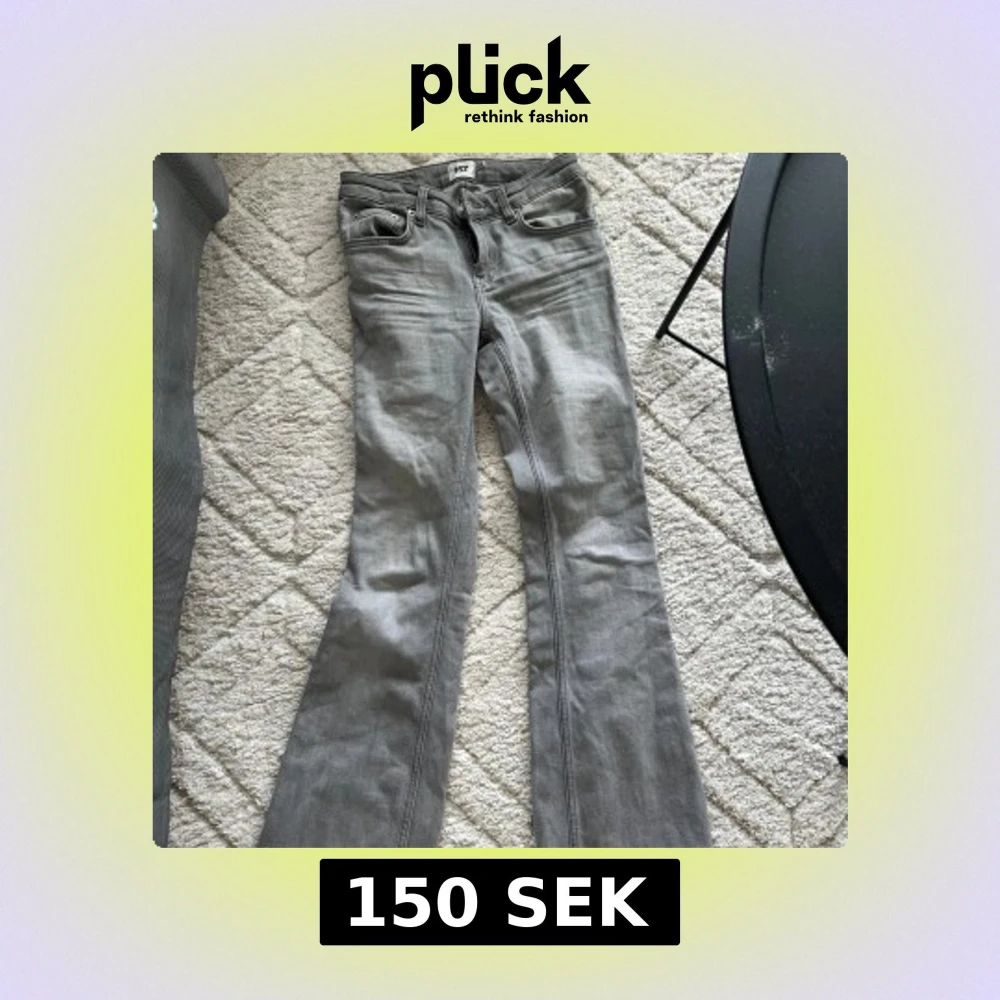 Säljer ett par gråa bootcut jeans med låg midja. Jättefint skick