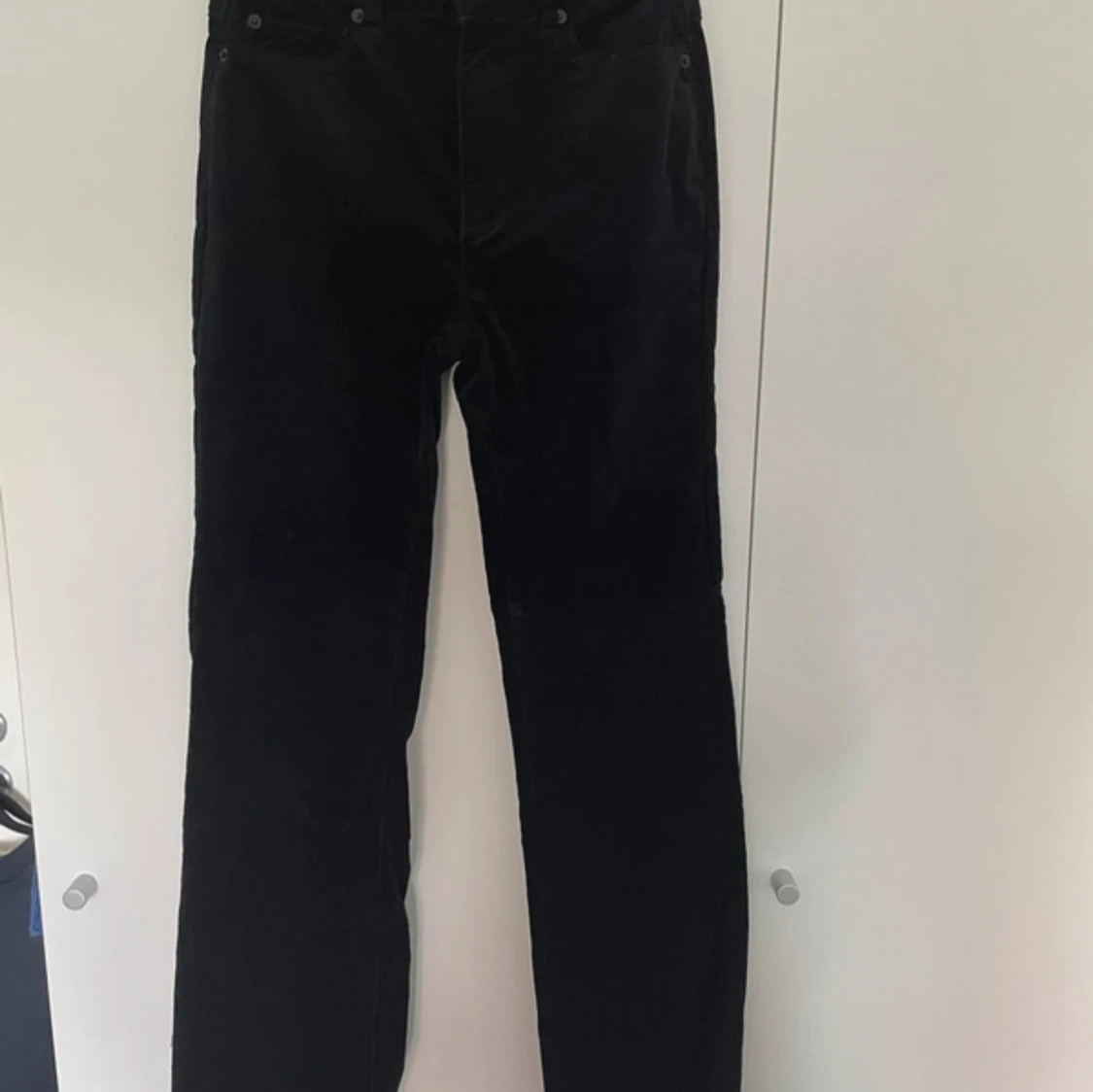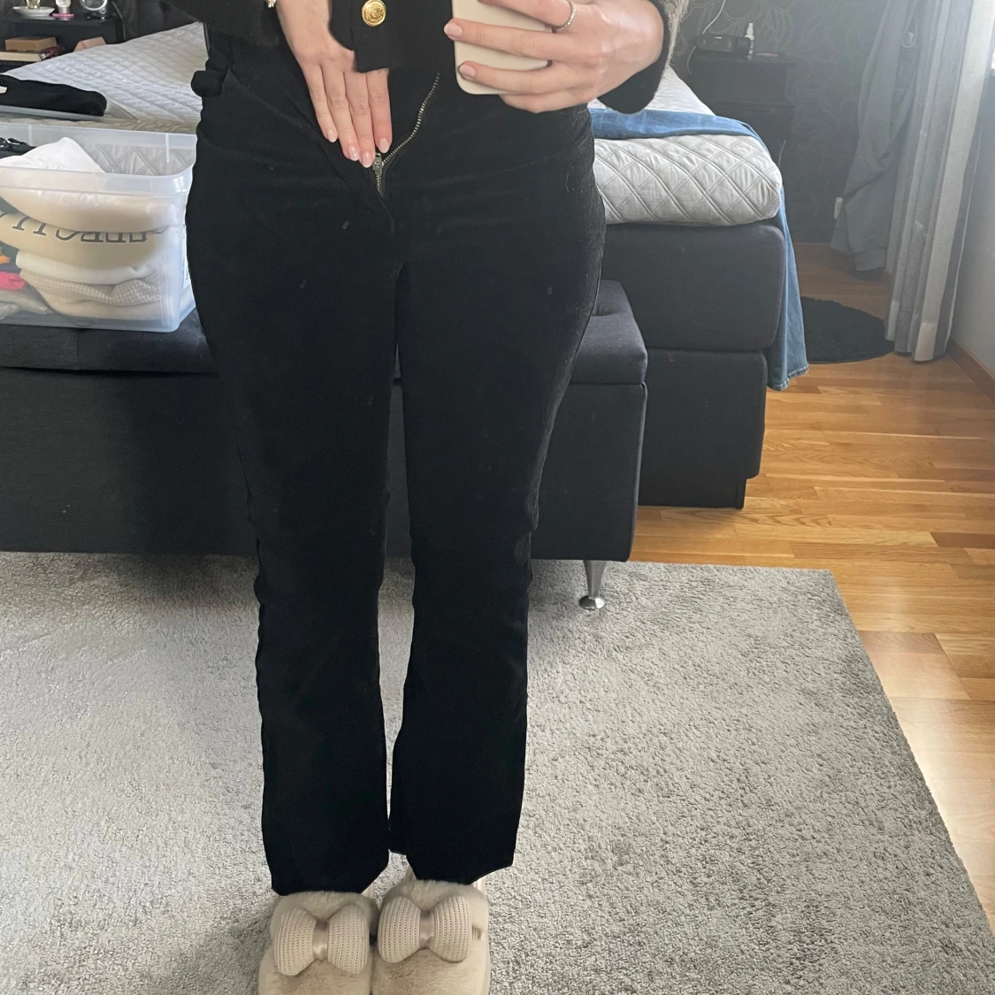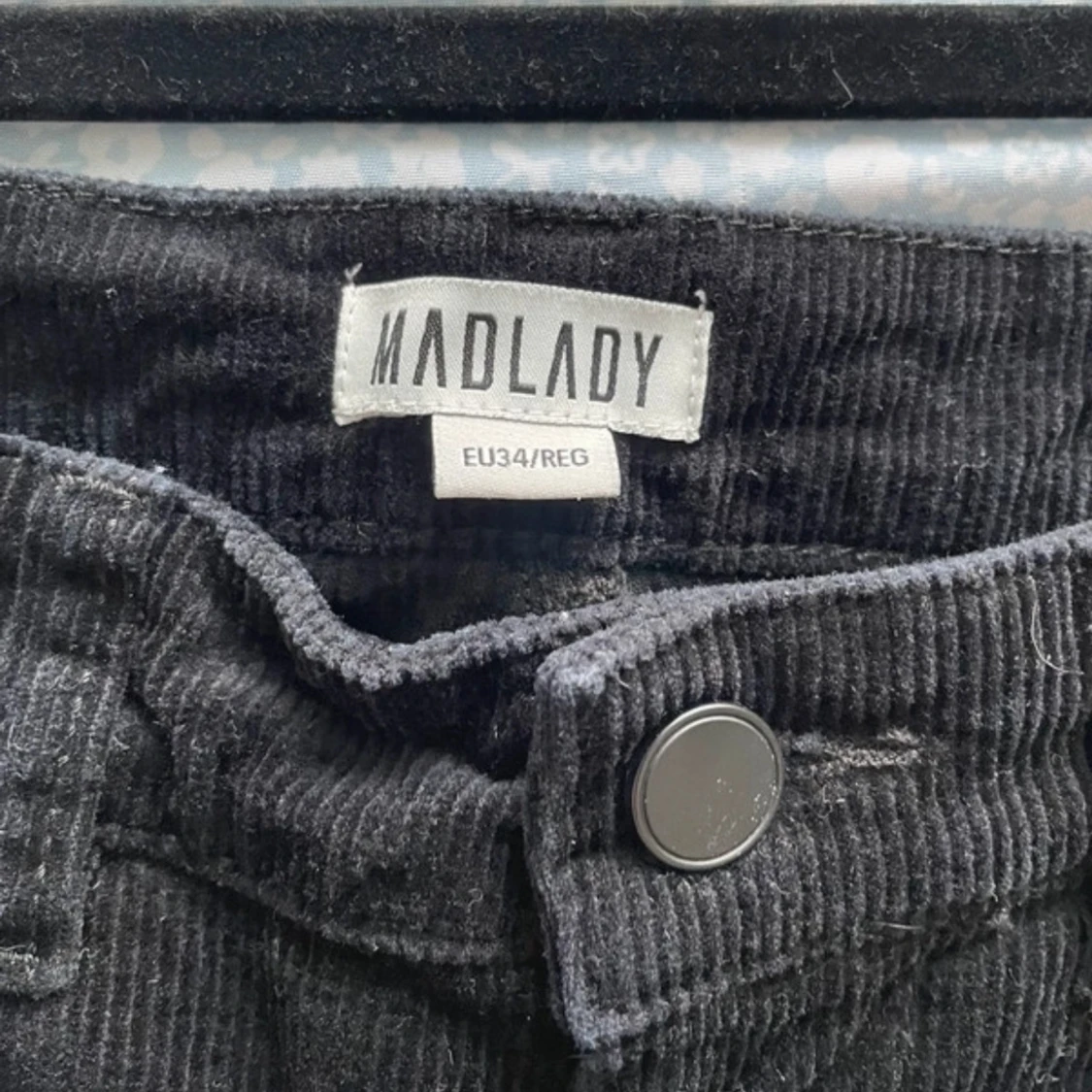 Svarta Manchester-byxor från Madlady. Strl 34/regular och modellen ”Stella”. Lite korta för mig som är 172cm lång. Använda 2-3 gånger. Lite luddiga på bilderna men i fint skick😊