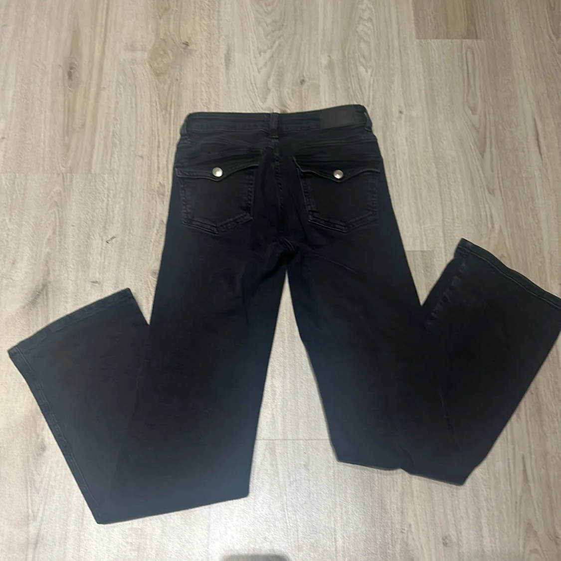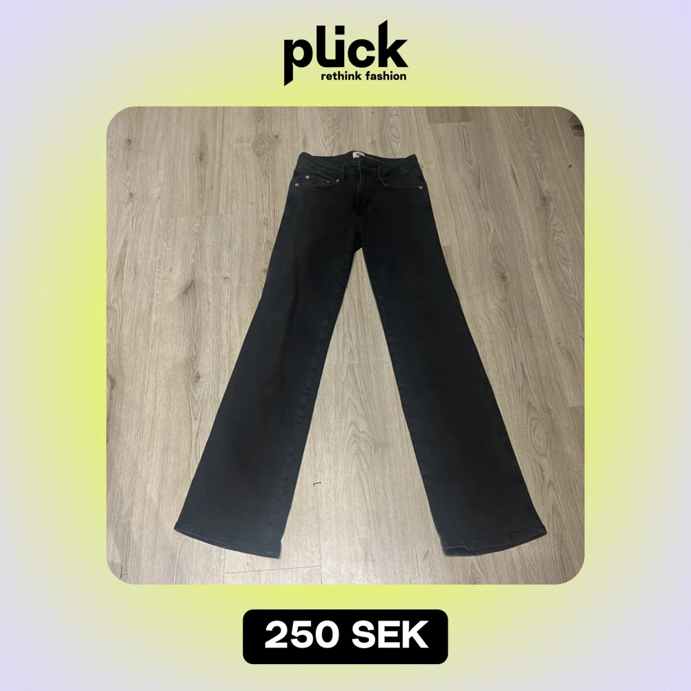 Säljer ett par svarta bootcut jeans i bra skick. De har en klassisk femficksdesign och är perfekta för både vardag och fest. Passar till allt och ger en snygg siluett. Perfekt för höst och vinter!
