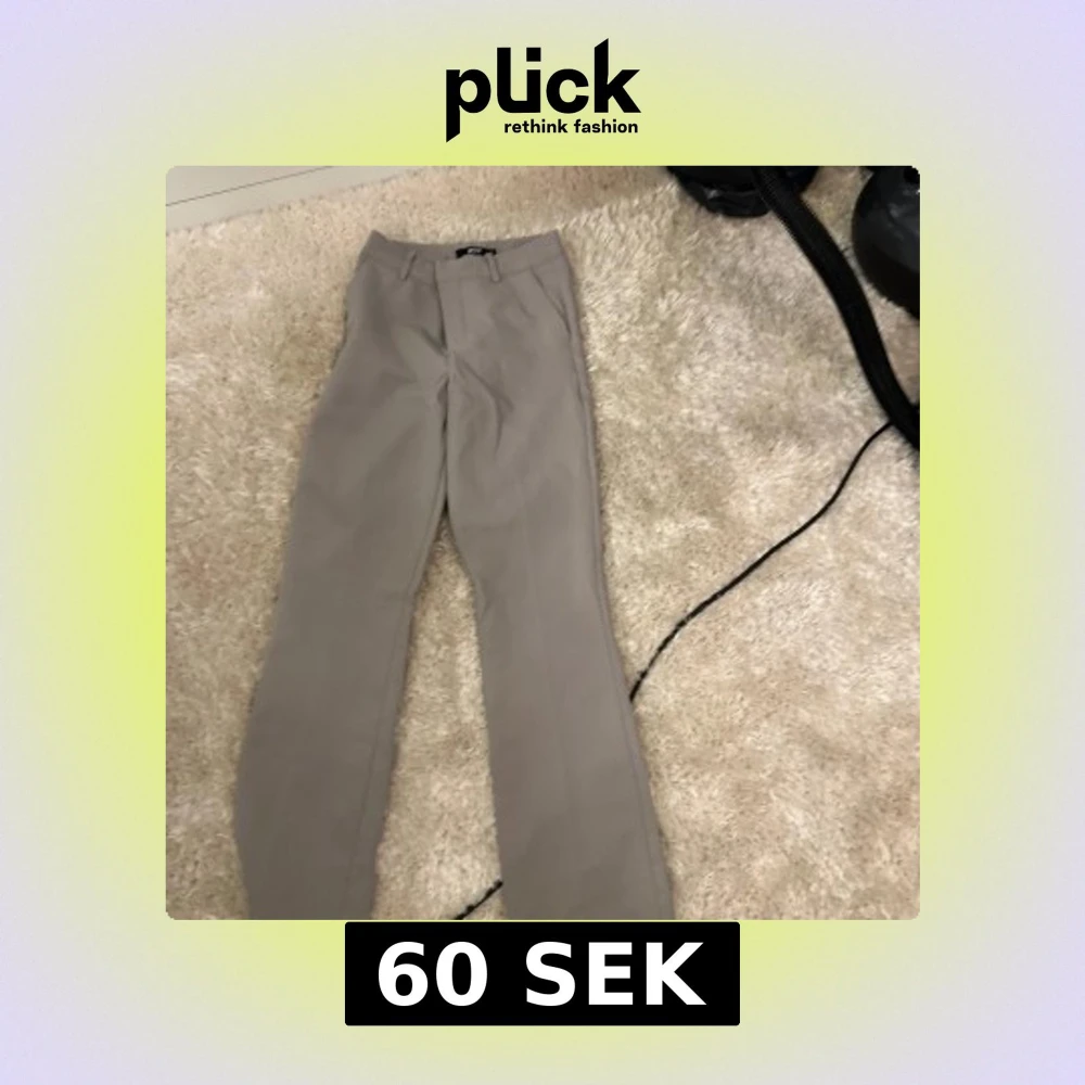 Snygga beige kostymbyxor med klassisk rak passform och hällor för bälte. Perfekta för en clean och stilren look. Byxorna har diskreta pressveck och stängs med dragkedja och knapp framtill.