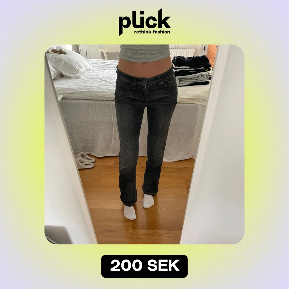 Säljer ett par svarta bootcut jeans i mycket bra skick. De har en snygg passform med låg midja och klassiska femficksdetaljer. Perfekta för både vardag och fest! 🖤
