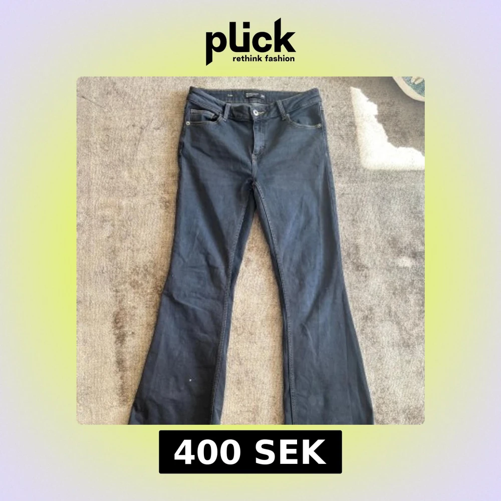 Mörkblåa lågmidjade bootcut jeans ifrån house denim, i lite stretchigare material. Jeansen är nästan aldrig använda, fråga gärna om mer mått eller bilder med dem på osv!🥰