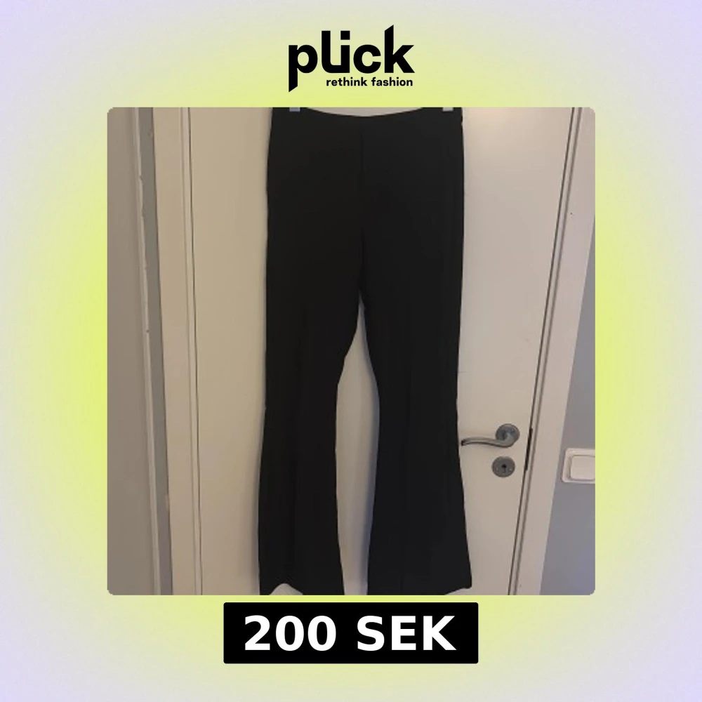 Svarta byxor från Amelie & Me i storlek 36. De har en bootcut-modell med utsvängda ben och mid midja. Snygg, stilren look som passar perfekt till sneakers eller boots. Materialet är mjukt och följsamt för en bekväm känsla hela dagen.