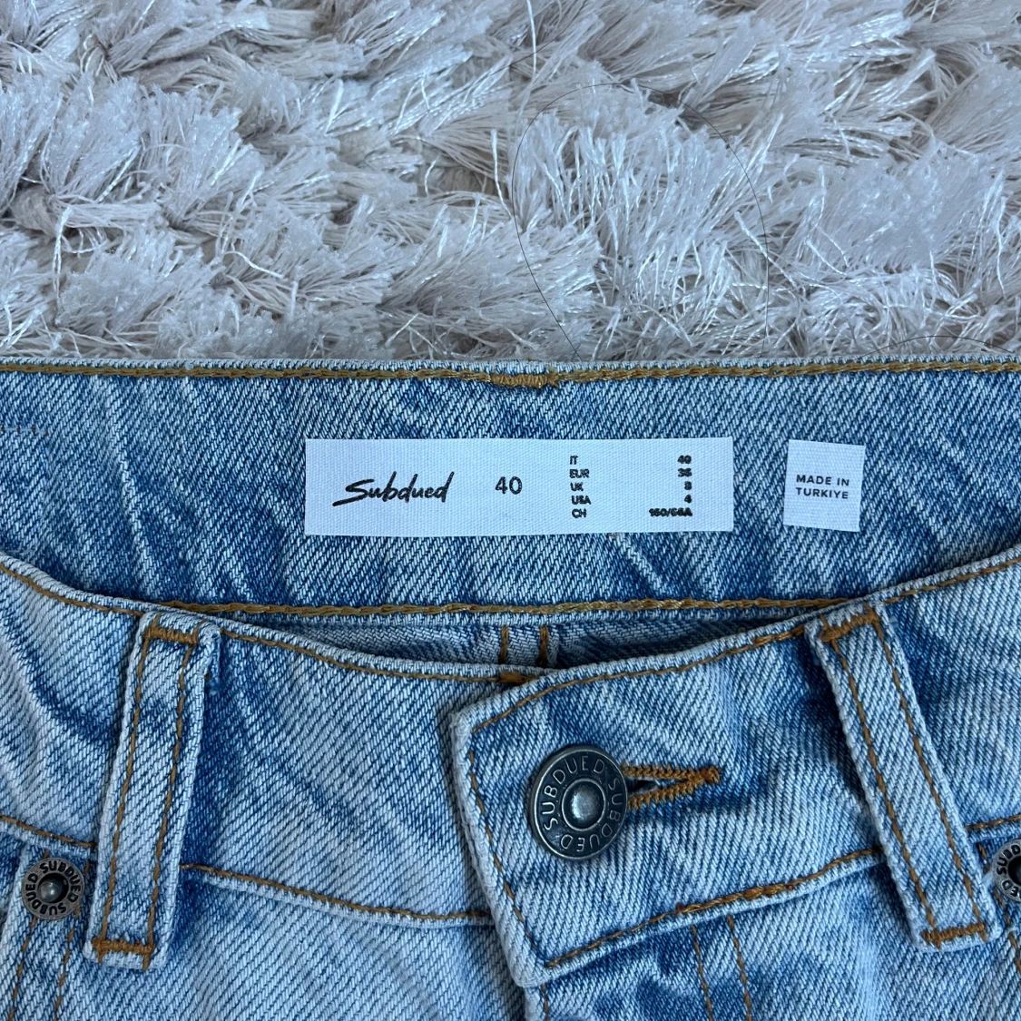 supersnygga lågmidjade jeans från Subdued! Strl 40 (italiensk) motsvarar EU 36. Jeansen är uppsydda litegrann pga att de var för långa på mig (160cm). Använda fåtal gånger. Midjemått rakt över: 37cm. Innerben: 73cm. skriv vid funderingar eller frågor🩷