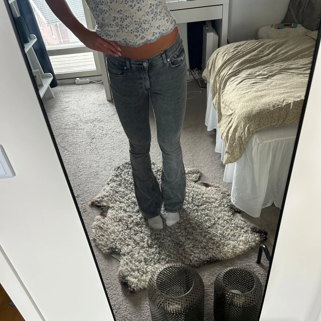 Snygga grå jeans från Gina tricot i bootcut-modell med normal midja. Älskar den unika färgen, jag är 170. Perfekta för dig som gillar en stilren och trendig look.