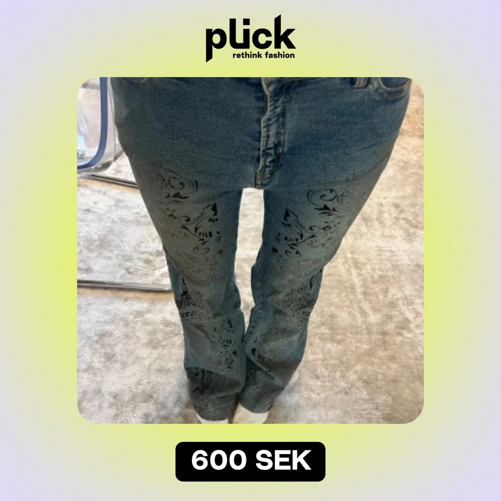 Jeans med unika mönster där fram. Andra bilden blev väldigt mörk men kom privat för närmare bilder på mönstret och färgen.