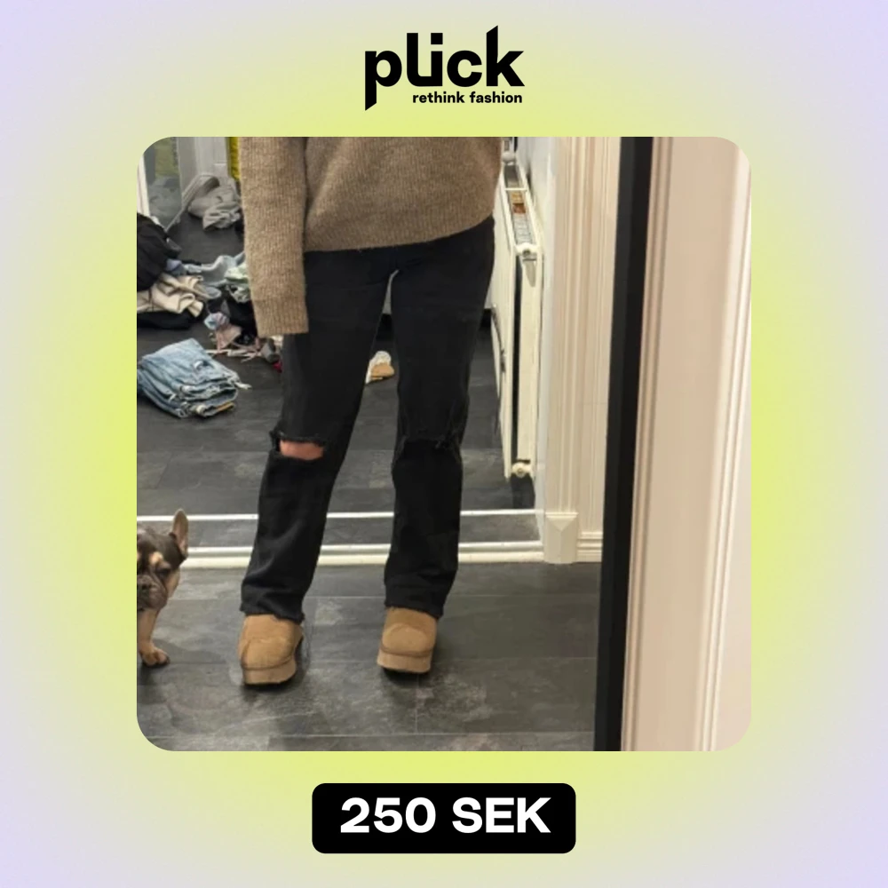 Ljusblå jeans med slitningar - Säljer ett par ljusblå jeans med slitningar vid knäna från Zara. Perfekta för en avslappnad och trendig look.