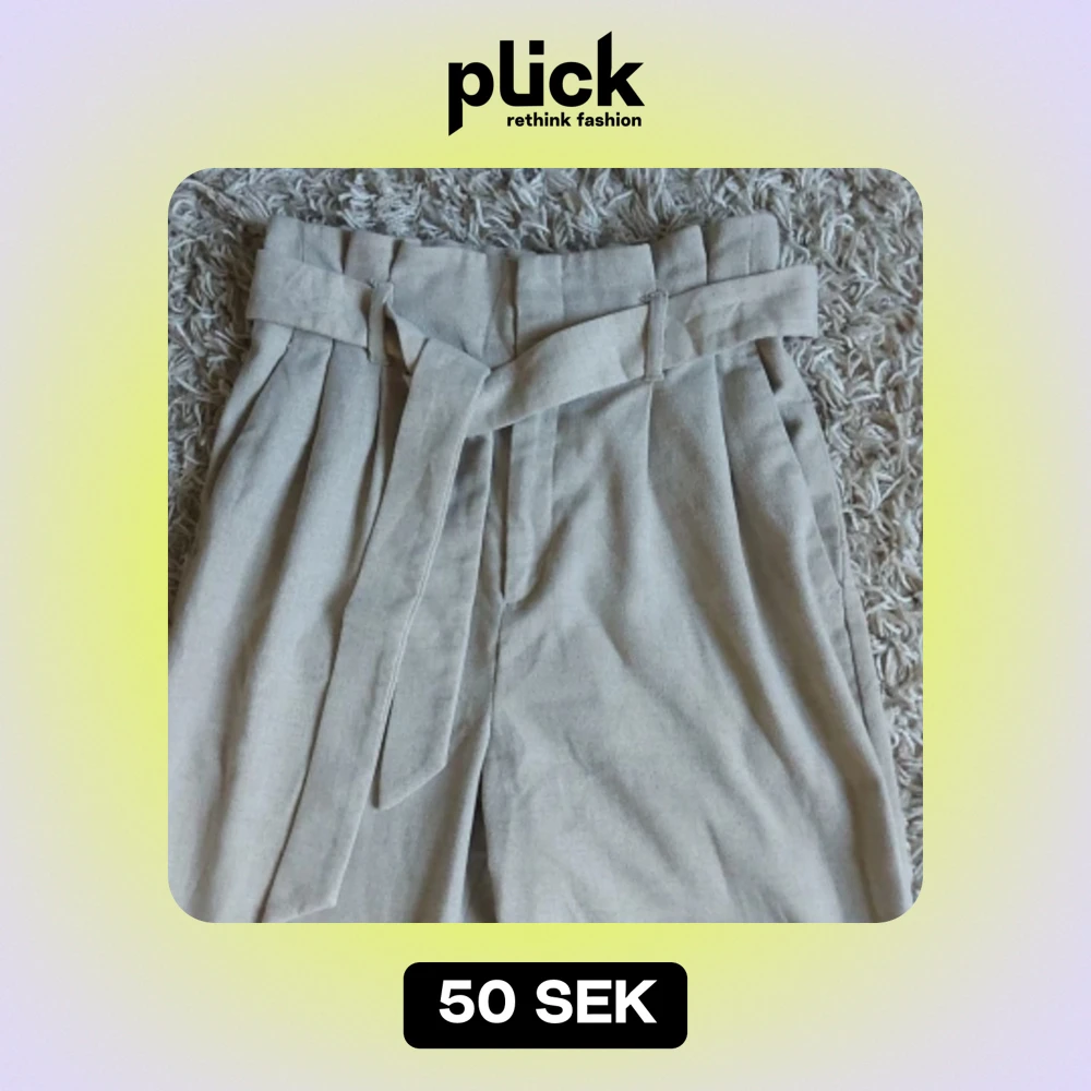 Säljer ett par snygga beige byxor med hög midja och bälte. Byxorna är i ett mjukt och bekvämt material, skönt och höstig. De har en lös passform och stängs med knappar och dragkedja. Superfina och trendiga!