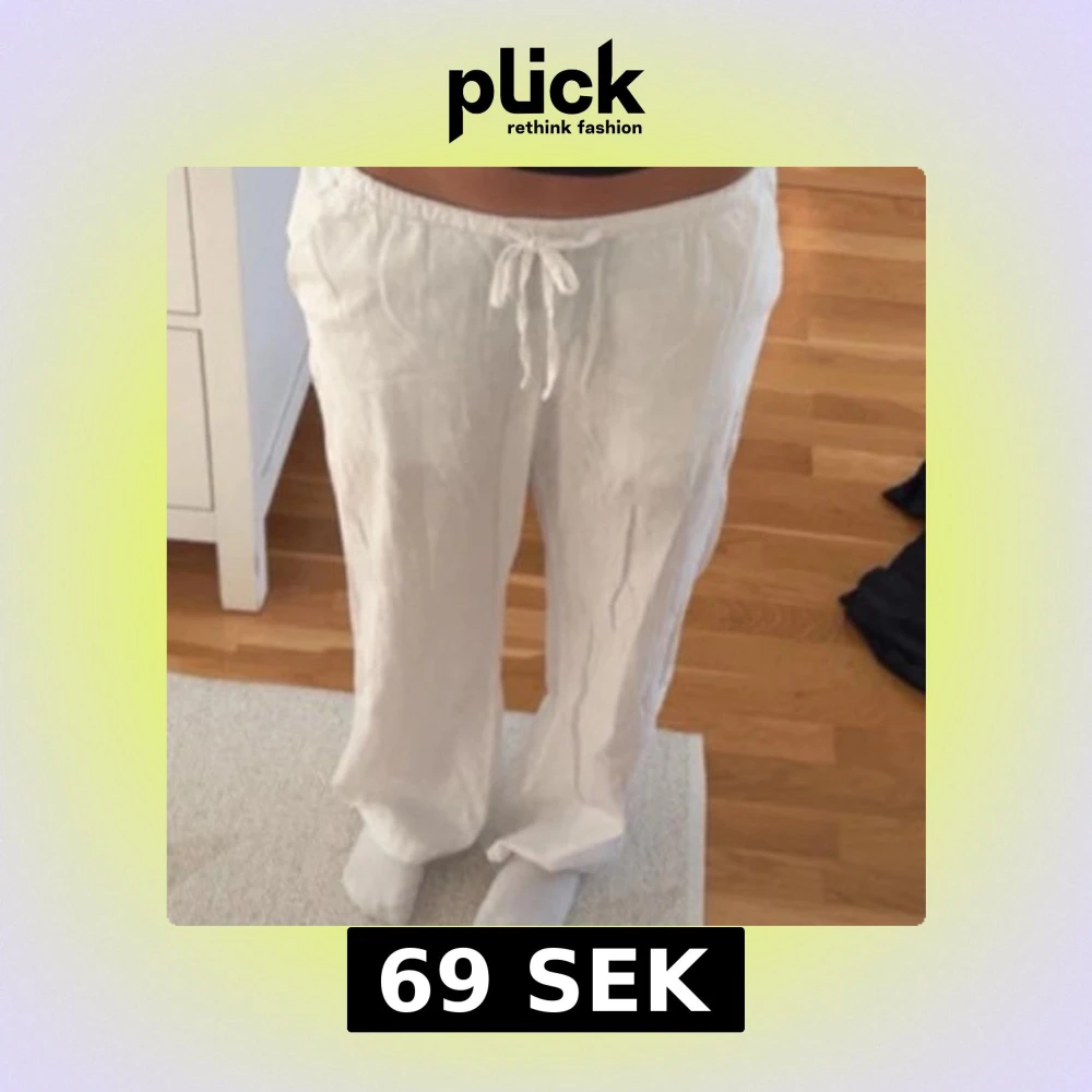 Snygga och luftiga vita linnebyxor med avslappnad passform och snörning i midjan. Perfekta för varma dagar och ger en chill vibe. Byxorna har raka ben och är tillverkade i mjukt linnematerial.