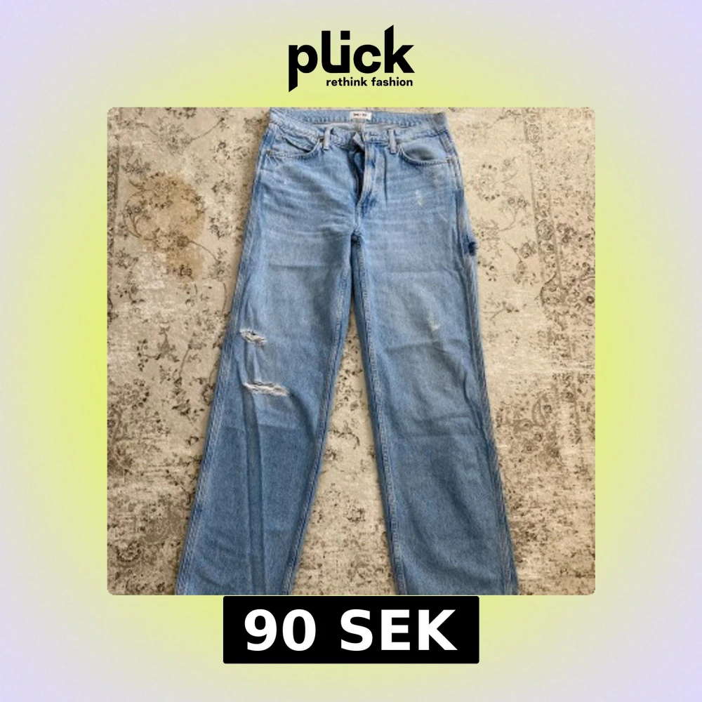 Säljer ett par ljusblå jeans från Lee x H&M med raka ben. I storlek 36. Använda ett fåtal gånger.