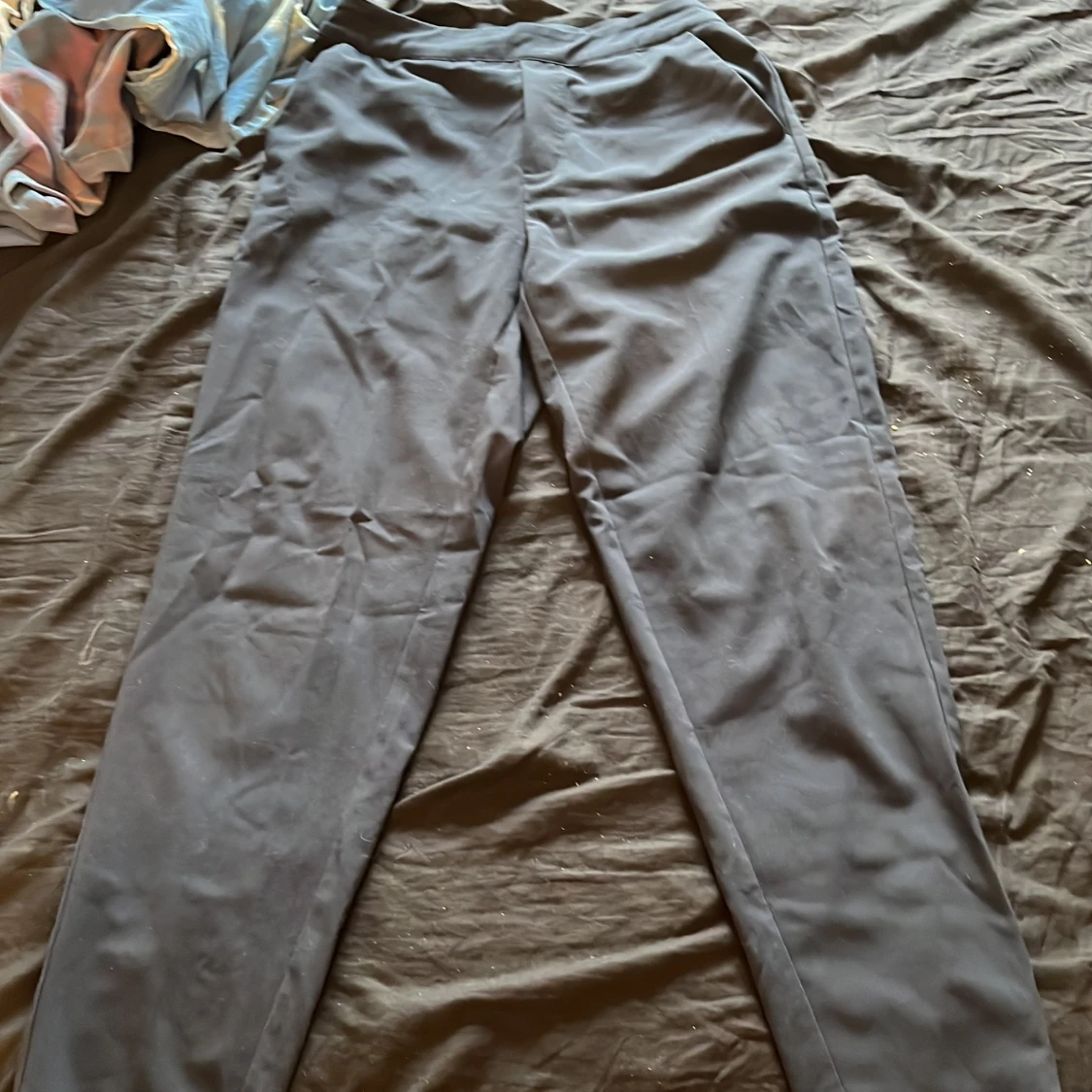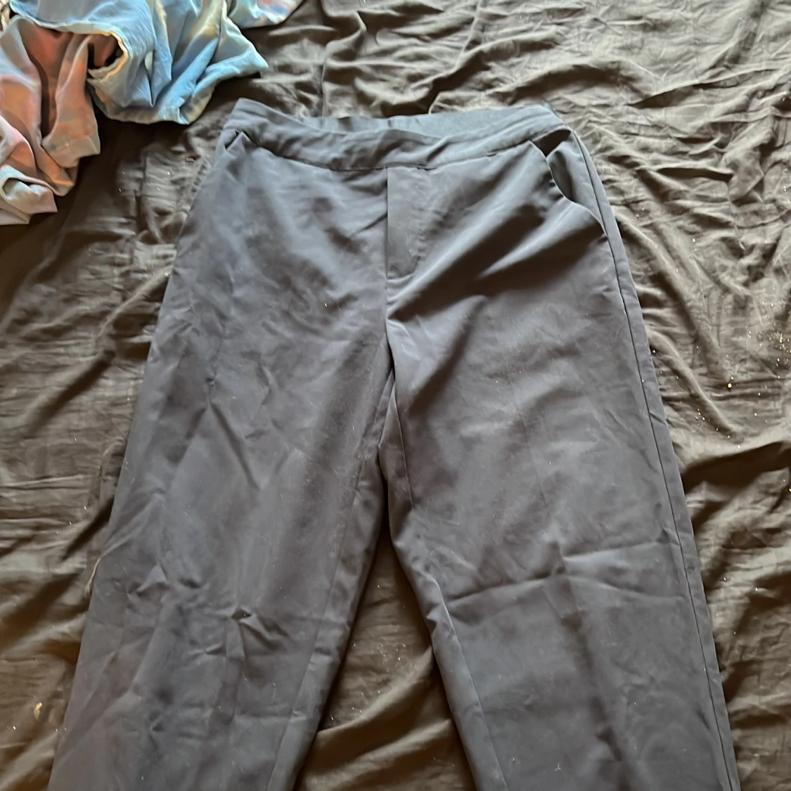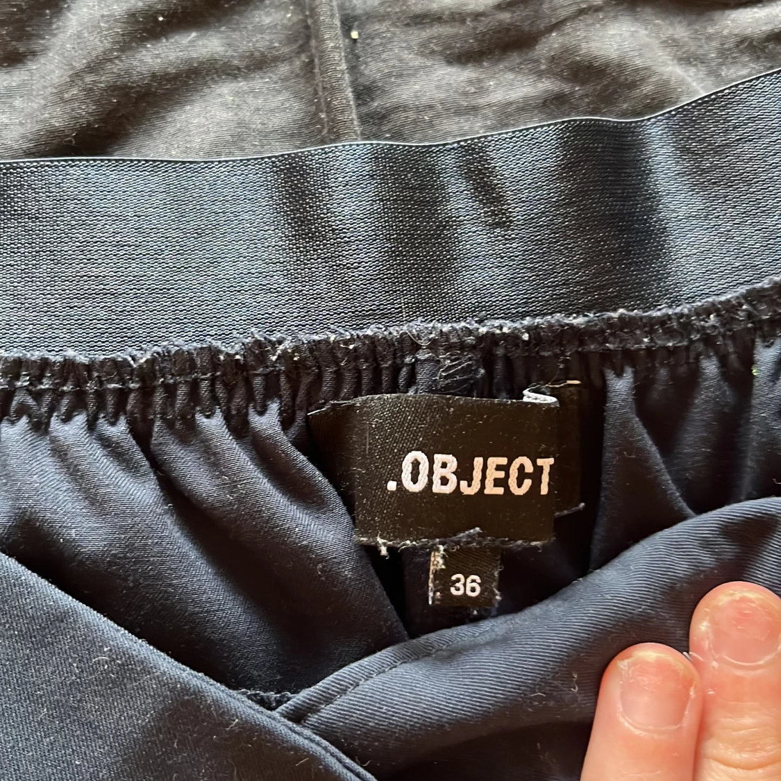 Blåa kostymbyxor från Object i storlek 36. Byxorna har rak passform, resår i midjan baktill och sidfickor. Snygg minimalistisk look som funkar till många olika outfits. Materialet känns mjukt och lätt, perfekt för en clean stil.
