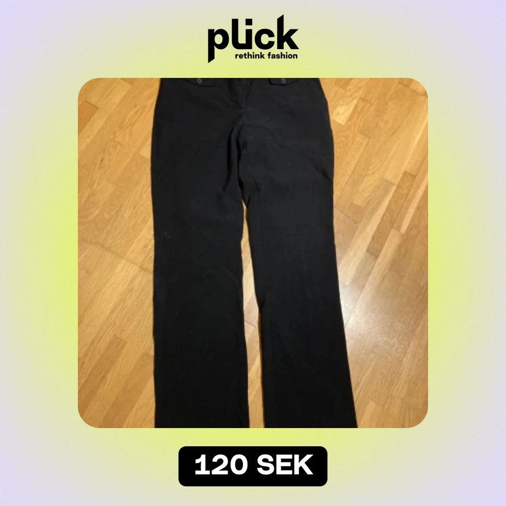 Svarta byxor med knappar och hällor en bit ner på linningen Raka ben