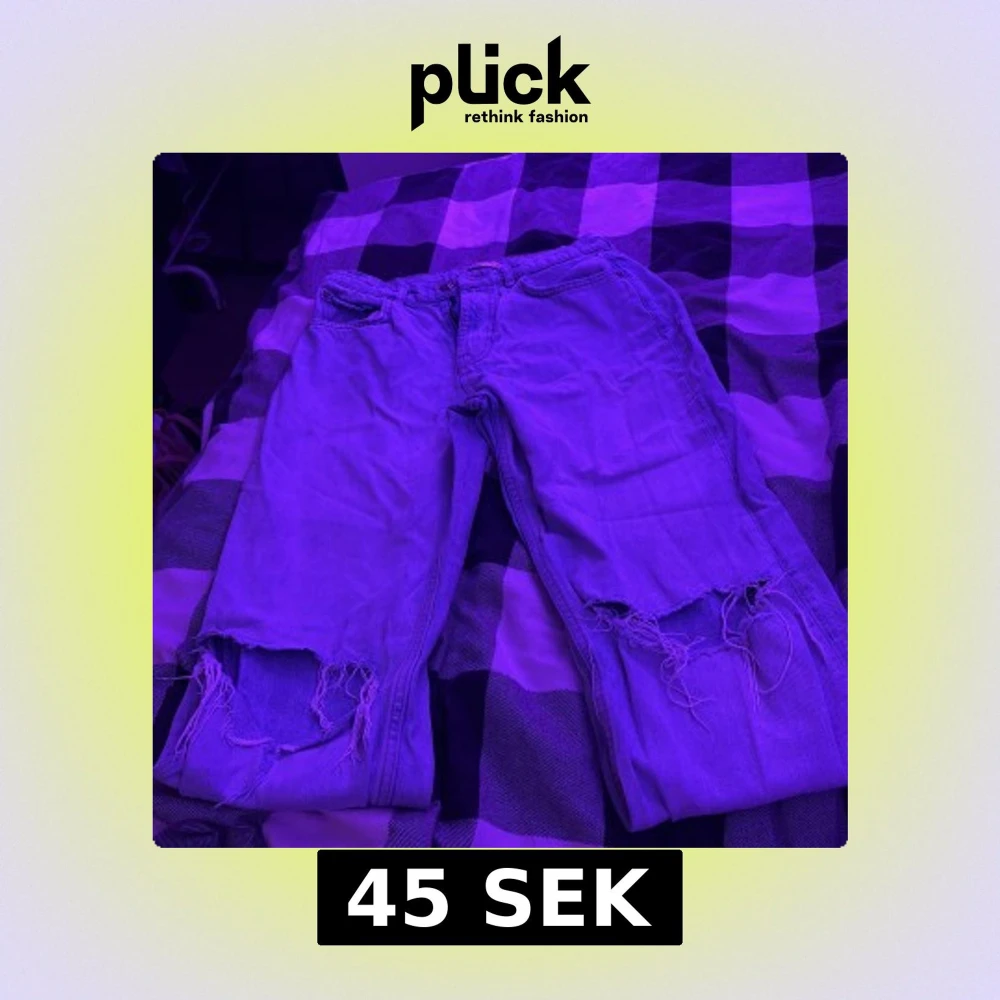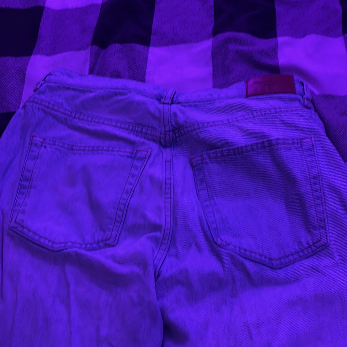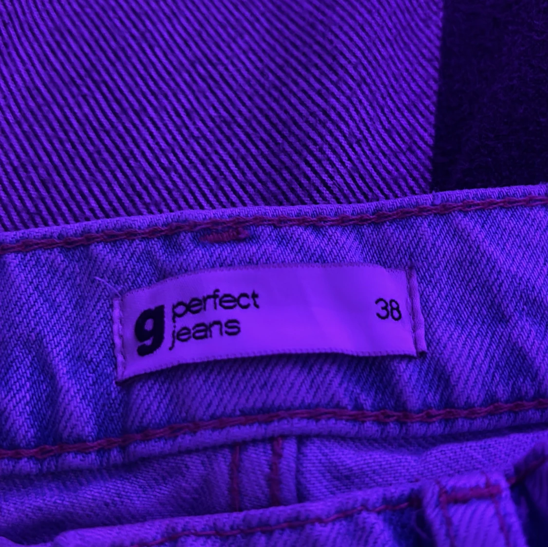 Säljer ett par ljusblå jeans från Gina perfect jeans i storlek 38. Modellen har klassisk femficksdesign och raka ben med stora slitningar och fransar vid knäna. Jeansen är tillverkade i jeansmaterial och har knapp och dragkedja framtill.