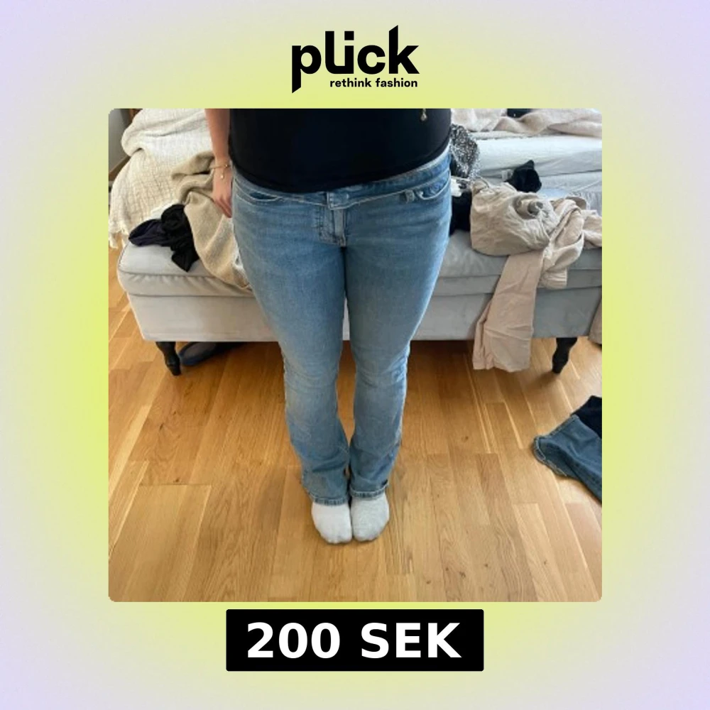 Ljusblå bootcut jeans med låg midja - Lågmidjade ljusblå jeans. Midjemått 37 cm, innerbenslängd 81-82 cm.💗