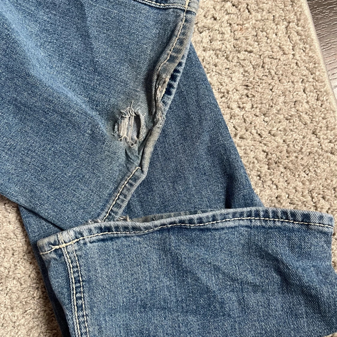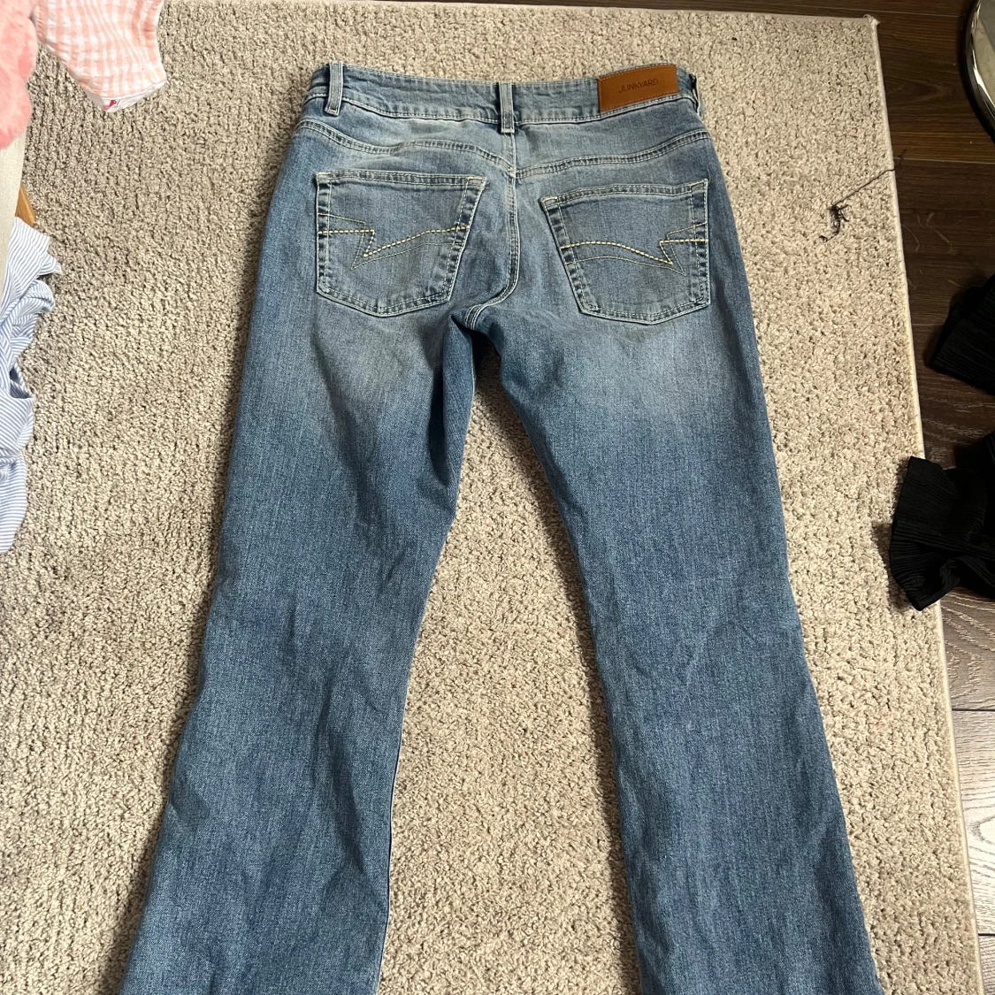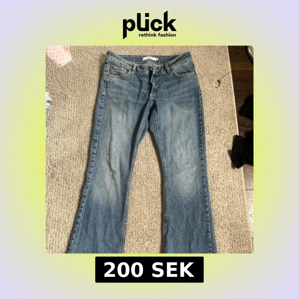 Snygga blå jeans från Junkyard med klassisk femficksdesign och bootcut-ben. Jeansen har ljus tvätt med slitningar och kontrastsömmar på bakfickorna. Tillverkade i jeansmaterial med dragkedja och knapp framtill. Perfekt för dig som gillar retrovibe och avslappnad stil.