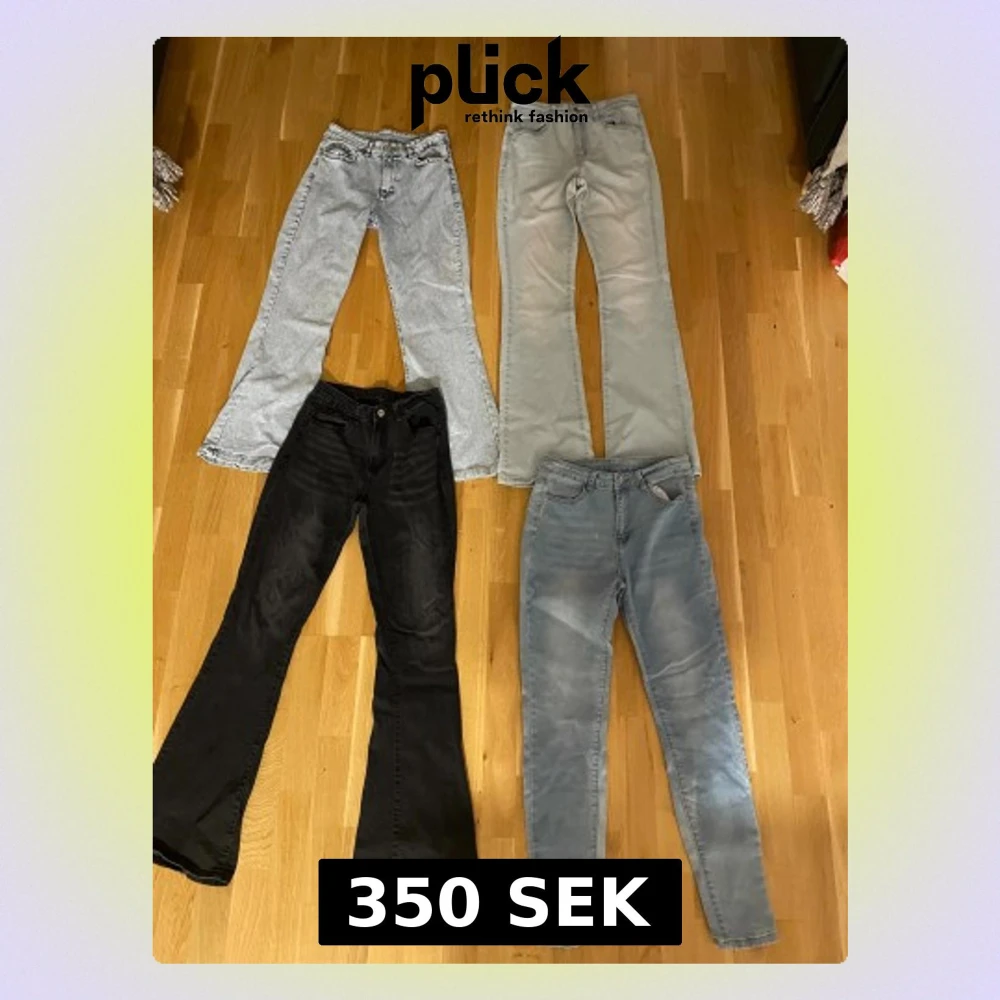 Säljer 4 par väldigt fina jeans, alla i storlek S. Alla är endast testade och därför i väldigt bra skick. Säljes i paket men kan även säljas styckvis