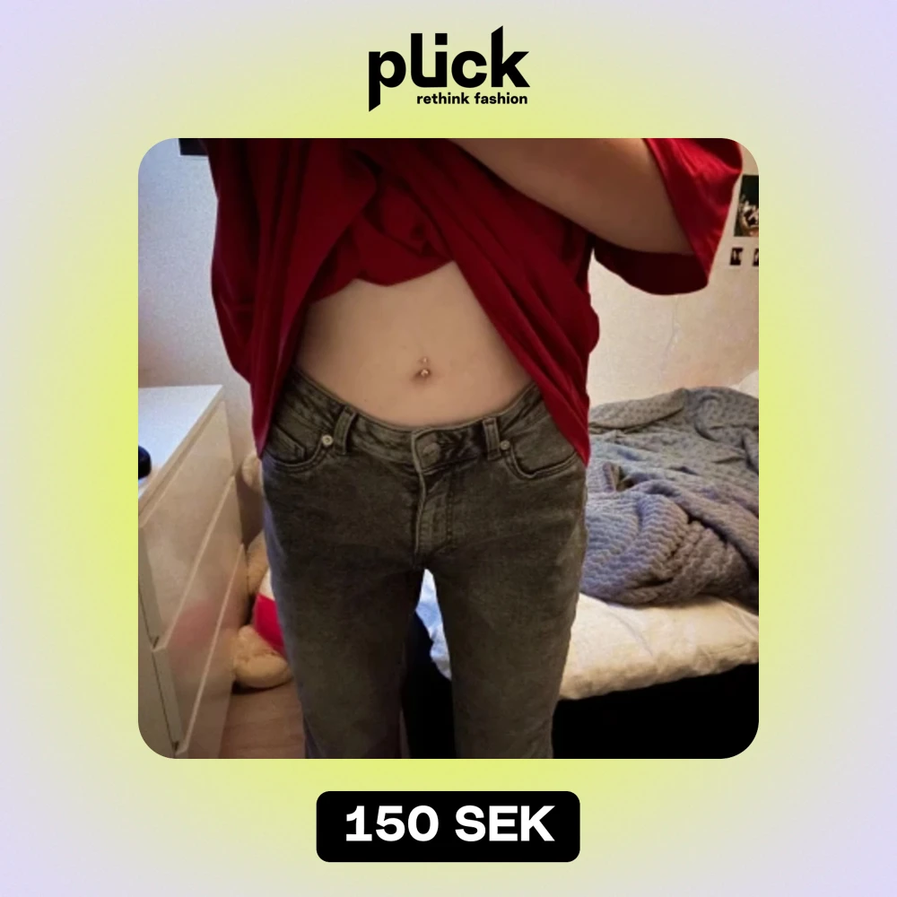 Crazy age jeans med trampstamp - Jag gjorde ett collage för att få plats med alla bilder, så jag ber om ursäkt om de är otydliga 😅Alla defekter syns på bilderna. Fläcken på byxorna är liten och svag. Defekter: fläck, lagningar och benöppningar. Byxorna sitter som på bilden trots lagningar och benöppning. För tillfället är jag tyvärr inte öppen för prisförhandlingar, men jag kommer nog att ändra mig om några veckor eller kanske 2-3 månader.   Innerben: 81 cm Midja: 41 cm Midjehöjd/rise: 17 cm Lår: 24 cm Benöppning: 27 cm