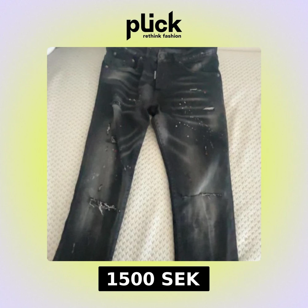 Snygga svarta jeans från Dsquared2 med coola slitningar och färgstänk. De har en modern design med knappgylf och femficksmodell. Perfekta för en trendig look.