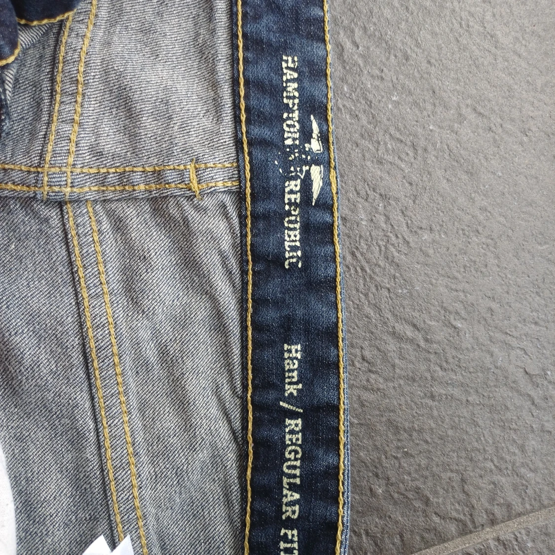 Snygga blå jeans från Hampton Republic med regular fit och klassisk femficksdesign. Jeansen har kontrastsömmar i gult och rak passform som ger en clean och tidlös look. Perfekta för dig som gillar enkel stil och vill ha ett par jeans som funkar till allt.