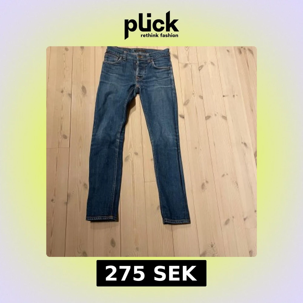 Säljer ett par klassiska blå jeans från Nudie i modellen Grim Tim. Storlek 27/30. Jeansen har en liten defekt men går lätt att lag och syns knappast.