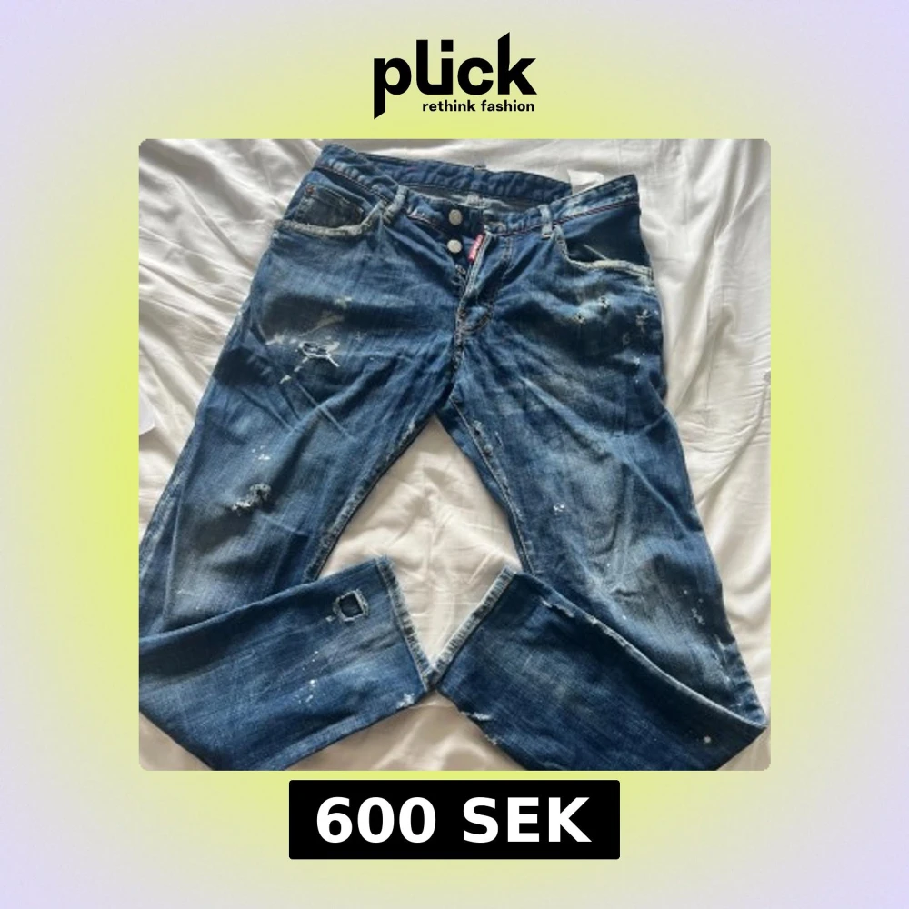 Snygga blå jeans från Dsquared2 med coola slitningar och färgstänk för en edgy look. Klassisk femficksmodell med raka ben och knappgylf. Tydliga Dsquared2-detaljer och röd logotagg vid gylfen. Perfekta för dig som gillar streetstyle. 100% äkta från NK