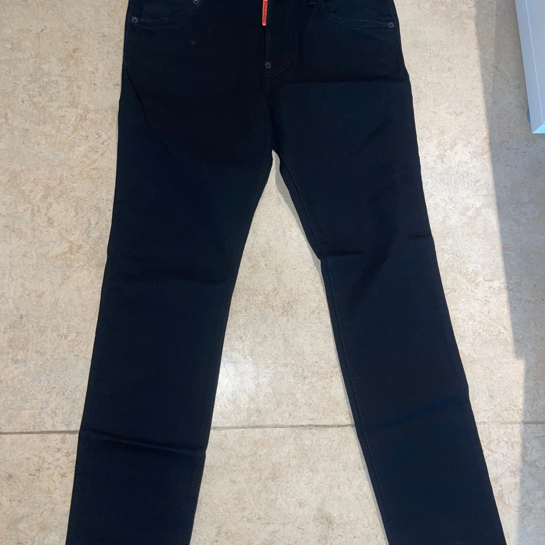 Snygga svarta jeans från Dsquared2 med klassisk femficksdesign och coolt patch med orange Dsquared2-logga bak. Jeansen har smal passform och raka ben, perfekta till sneakers eller boots. Materialet är mjukt och stretchigt för extra komfort.