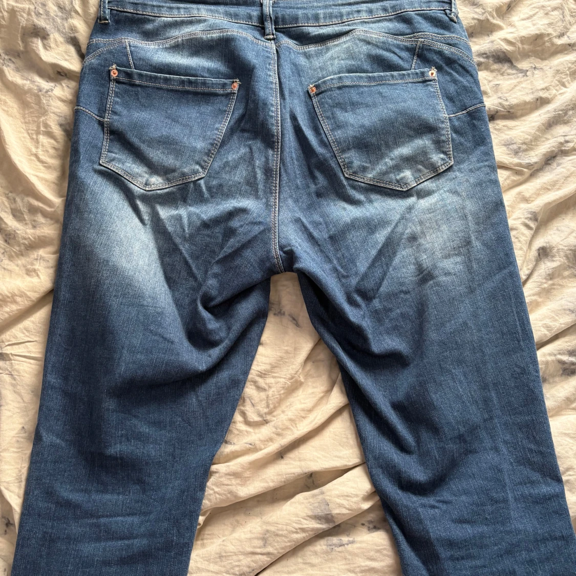 Snygga blå jeans från Desiré denim i storlek 46. Klassisk femficksmodell med dragkedja och knapp framtill. Jeansen har raka ben och normal passform, tillverkade i mjukt denimtyg. Perfekta för en chill och avslappnad stil.