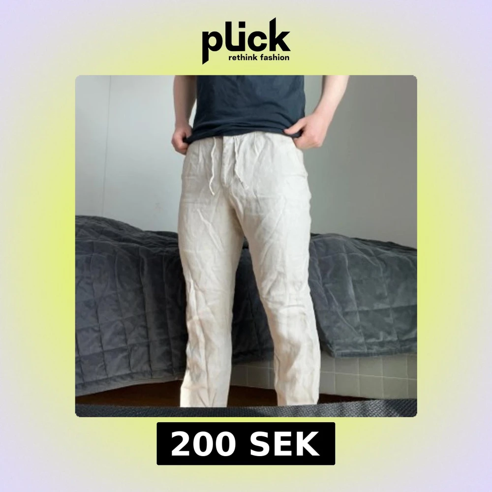 Snygga beige linnebyxor från Bläck med snörning i midjan. Perfekta för en avslappnad stil. Byxorna har en klassisk passform och är tillverkade i ett lätt och luftigt material.
