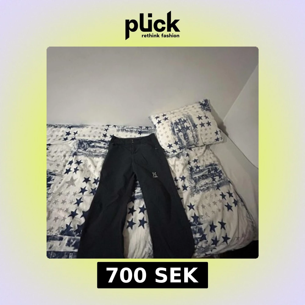 Svarta täckbyxor från Haglöfs med dragkedjor vid fickorna och logga på låret. Byxorna har normal passform och är tillverkade i slitstarkt syntetmaterial, perfekta för vinterns alla äventyr.