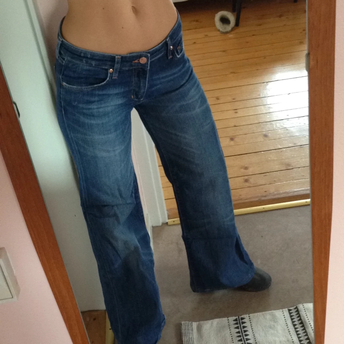 Superskönt blåjeans i lite 70-tals stil. Utsvängda och midjehöga.