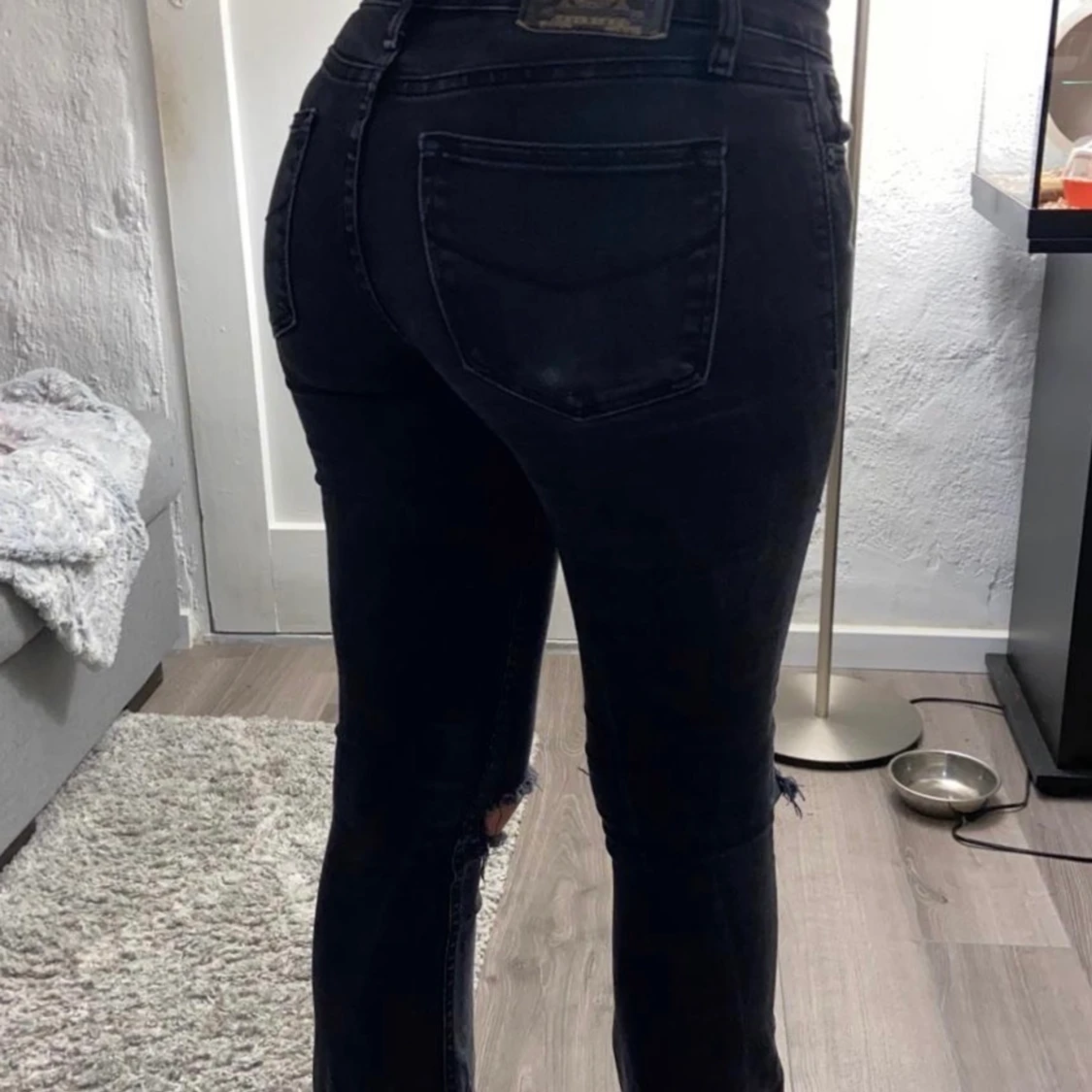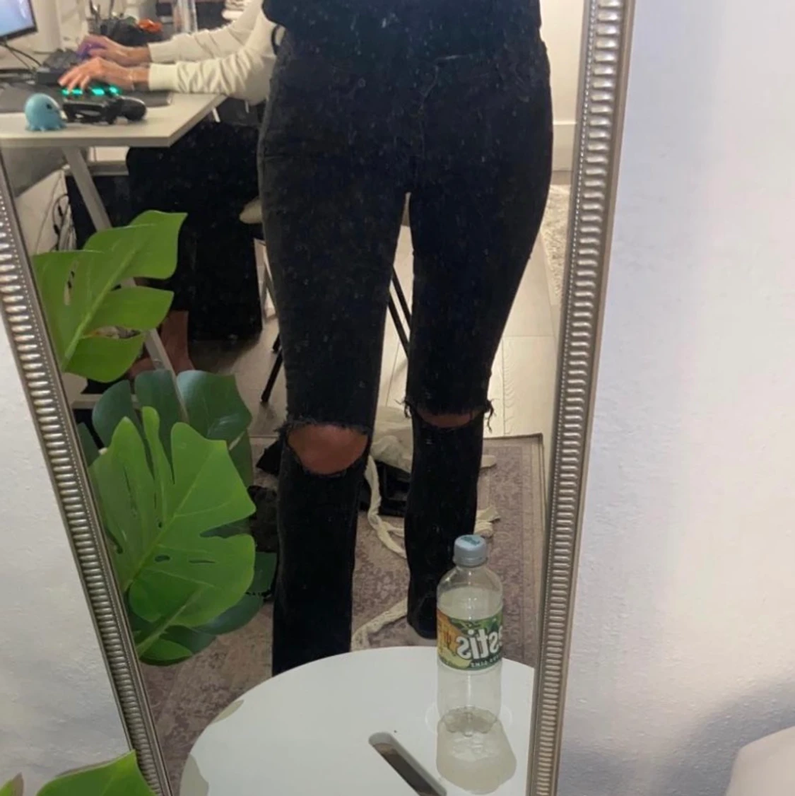 Lågmidjade boot cut jeans med hål på knäna. Knappt använda! Kontakta mig för mer info, köparen står för frakten🙏🏼😊
