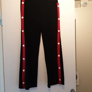 Svarta byxor med knappar på sidorna.