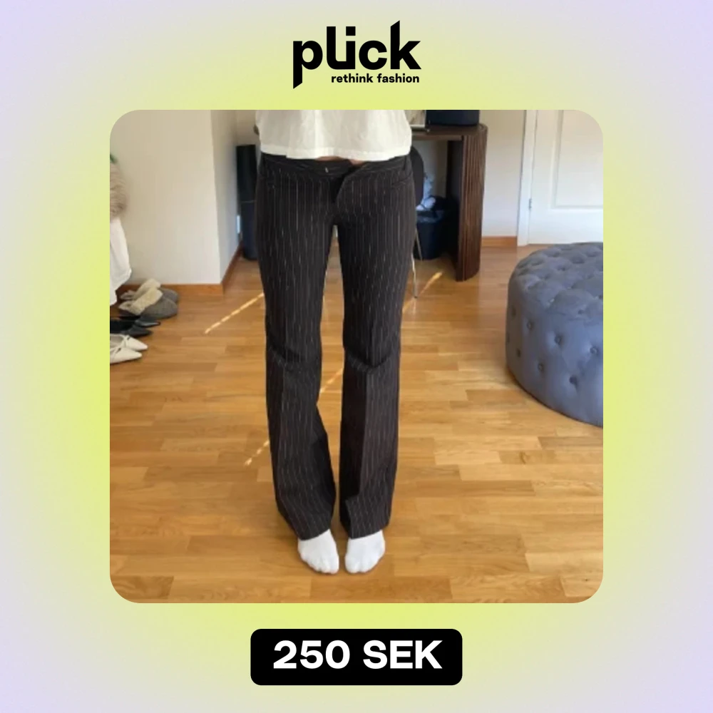 Randiga lågmidjade kostymbyxor. Lånade bilder, skriv för egna. Vet tyvärr ej märke eller storlek men uppskattar till s-m