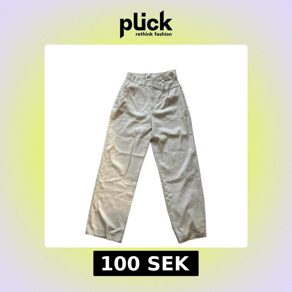 Snygga beige kostymbyxor från Adoore med diskret rutigt mönster och hög midja. Perfekta för en clean och stilren look.