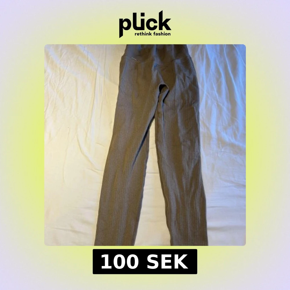 Snygga beige leggings med ribbad struktur och hög midja. De är stretchiga och sitter tight, perfekta för en chill och trendig look. Passar lika bra till oversized hoodie som till crop top.